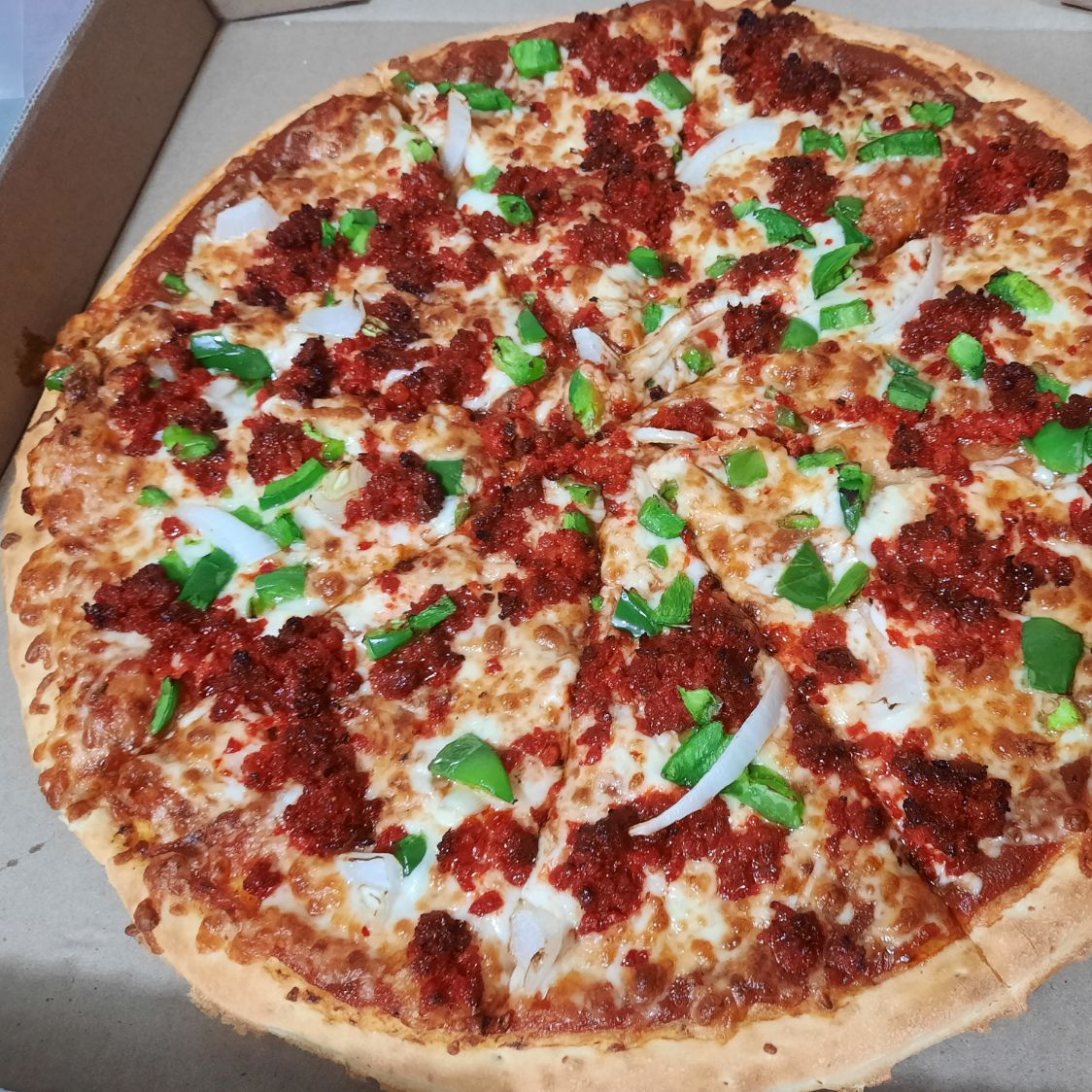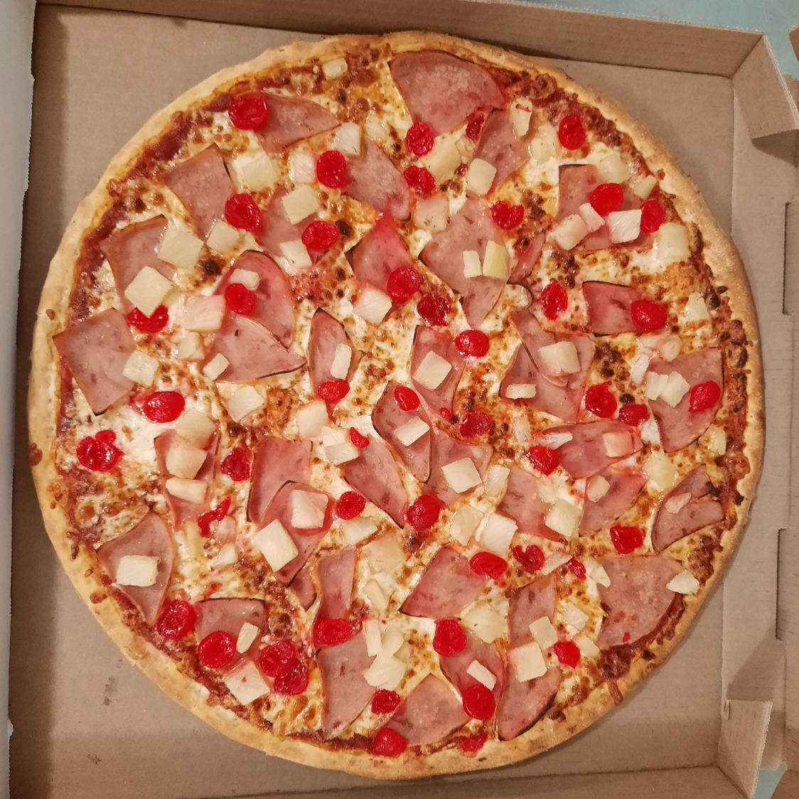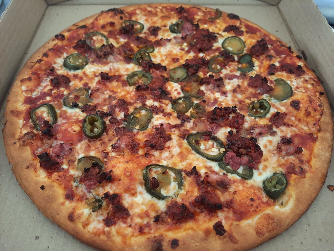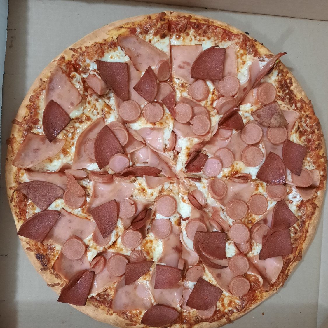 Peperoni, champiñones, elote, pimiento verde, tocino.