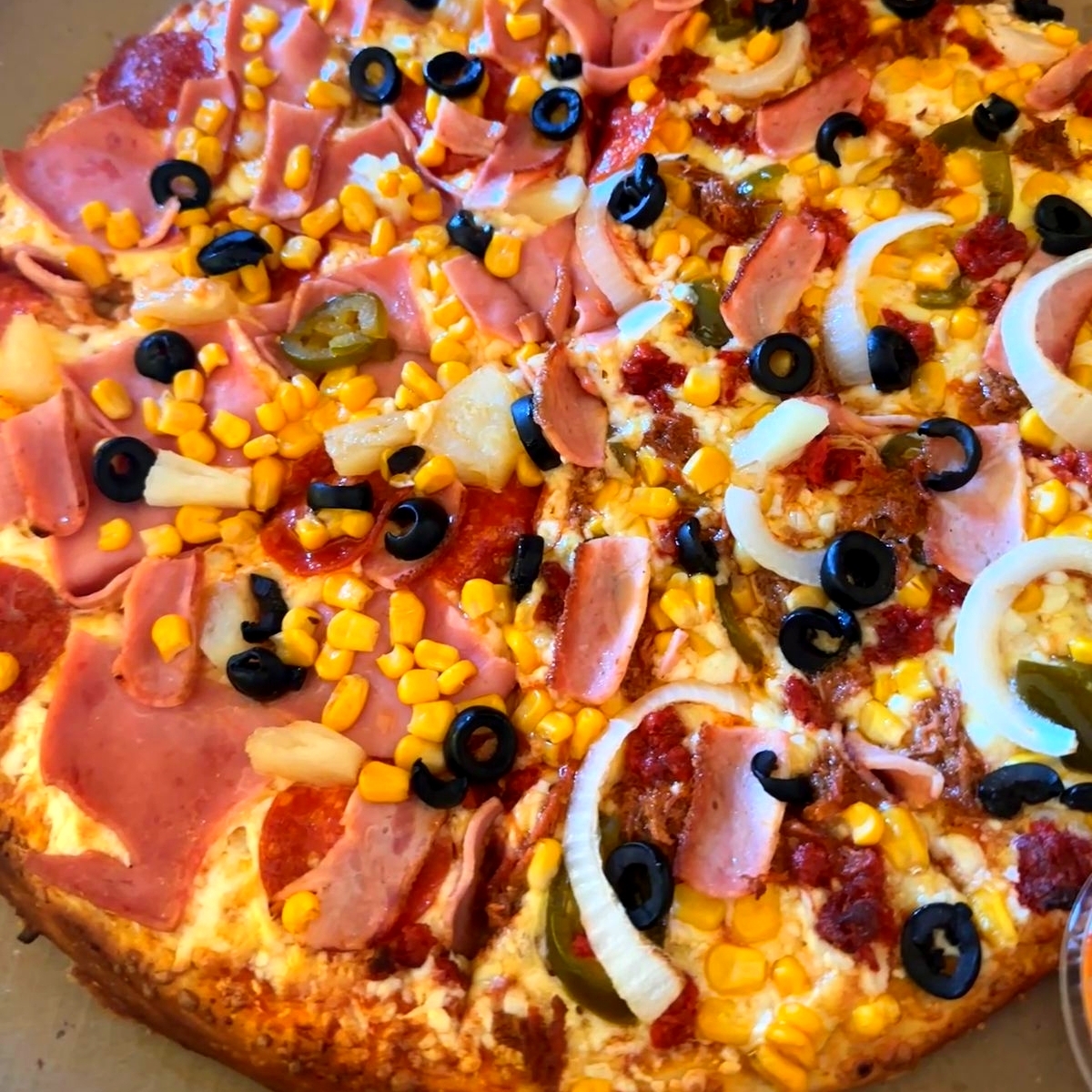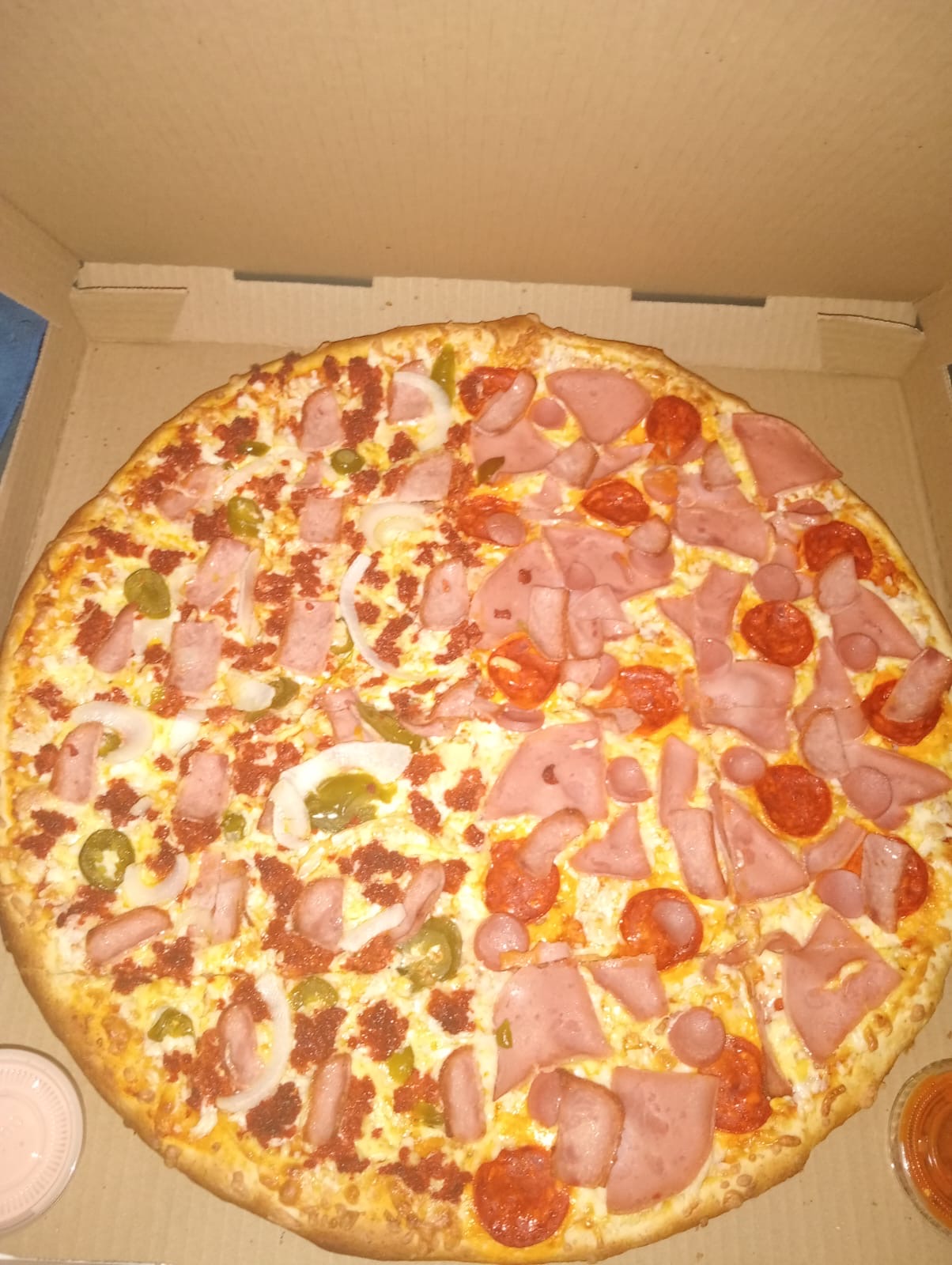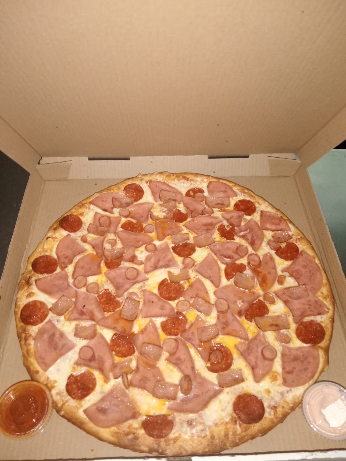 Pizza Grande de Pepperoni, jamon, salchicha y tocino