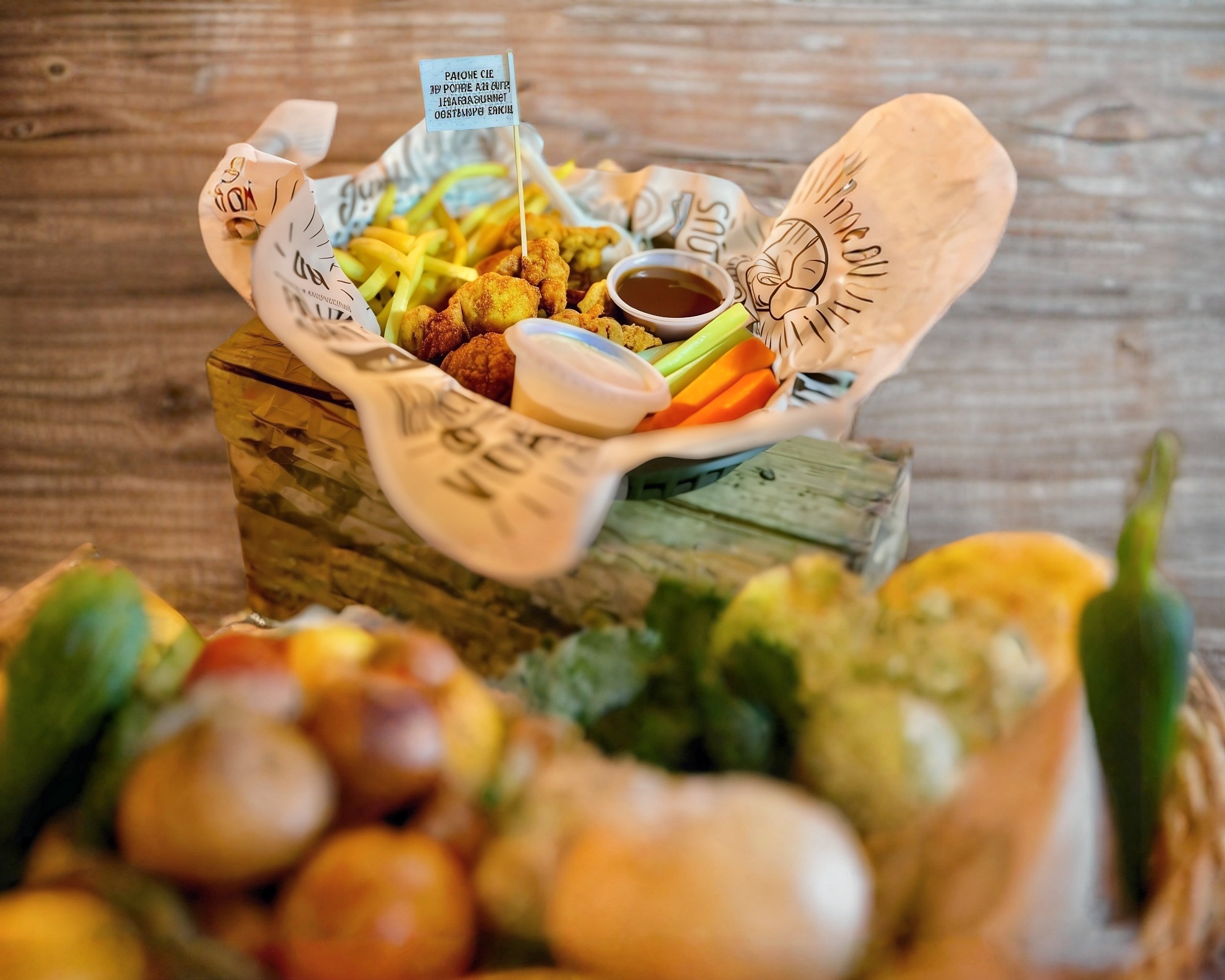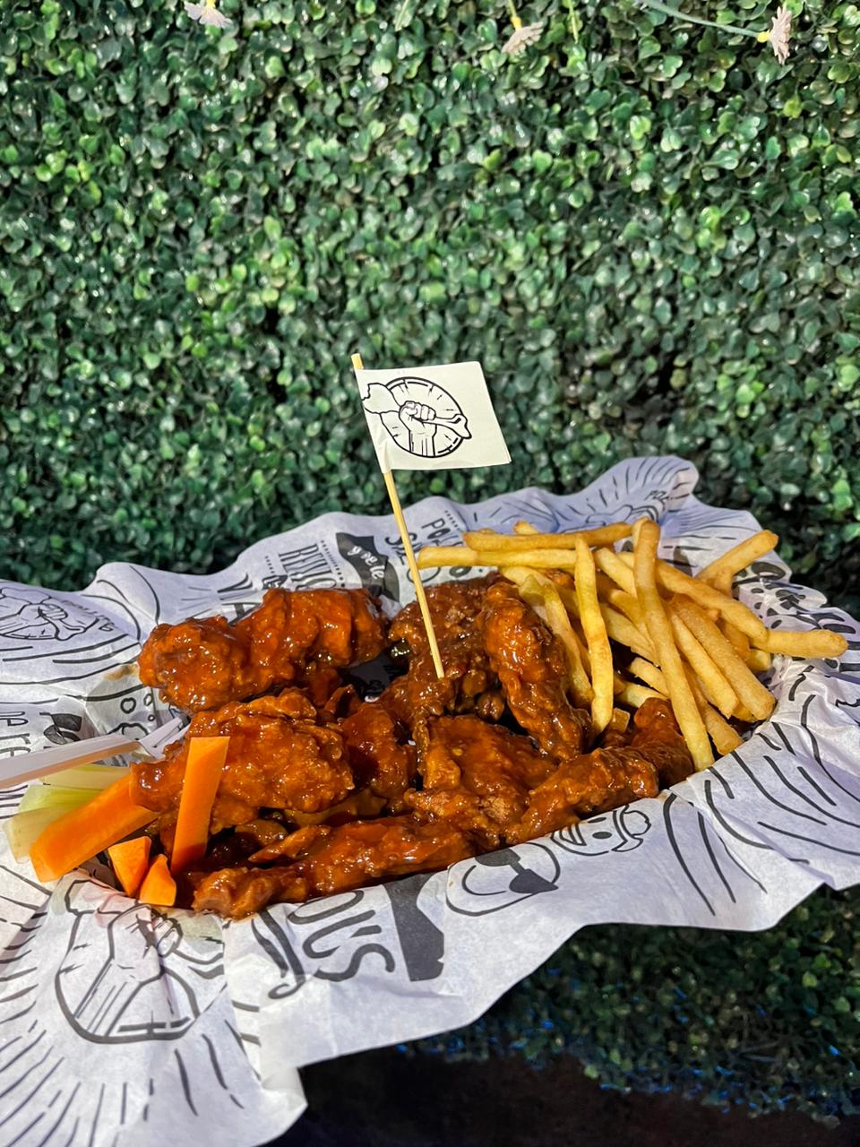 300 gr de boneless, tu decides si bien bañados o shipi shipi, acompañados de zanahoria, apio y aderezo de la casa.