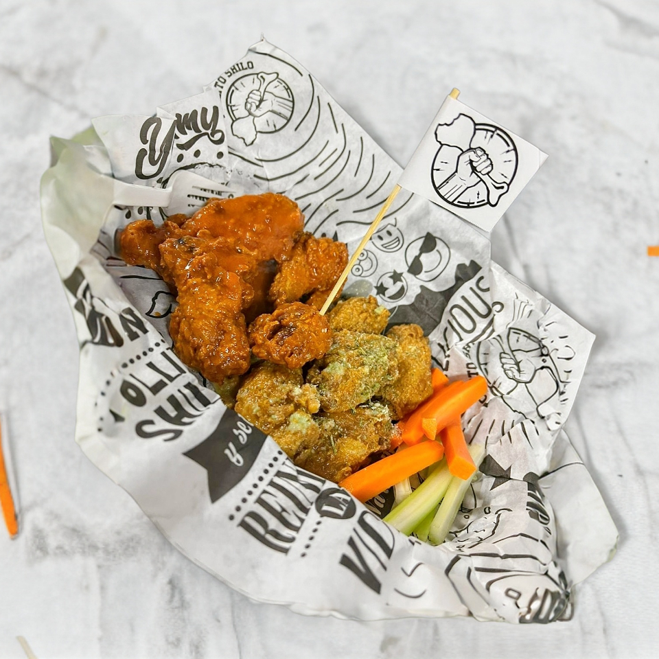 300 gr de boneless, tu decides si bien bañados o shipi shipi, acompañados de zanahoria, apio y aderezo de la casa.
