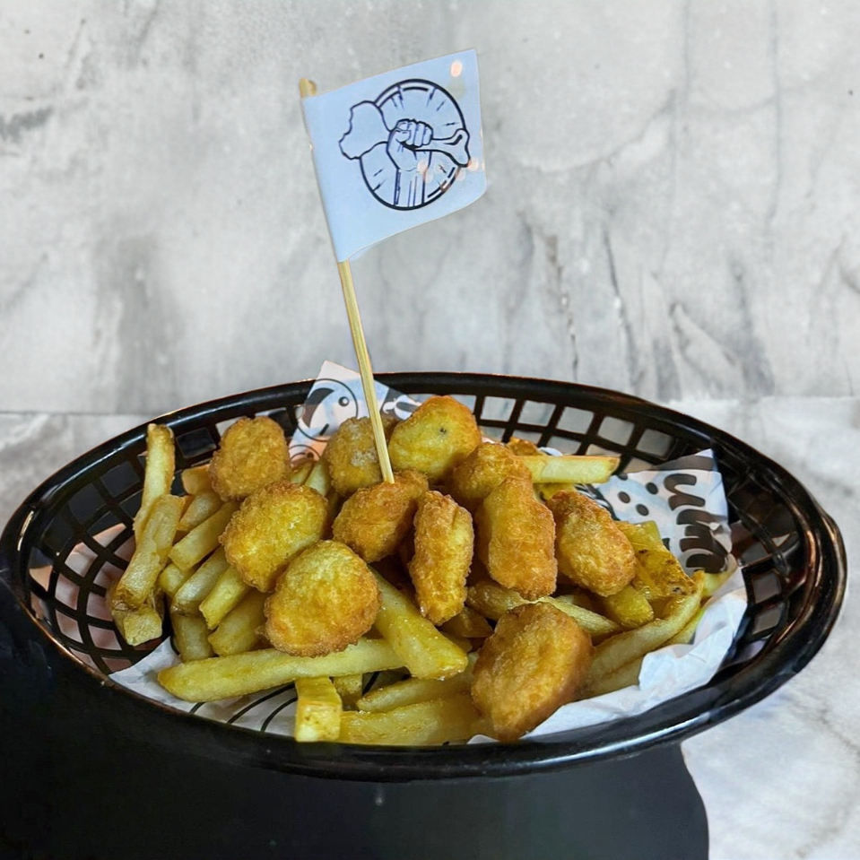 200 gr De papas a la francesa con palomitas de pollo (10 a 12 pzas).
