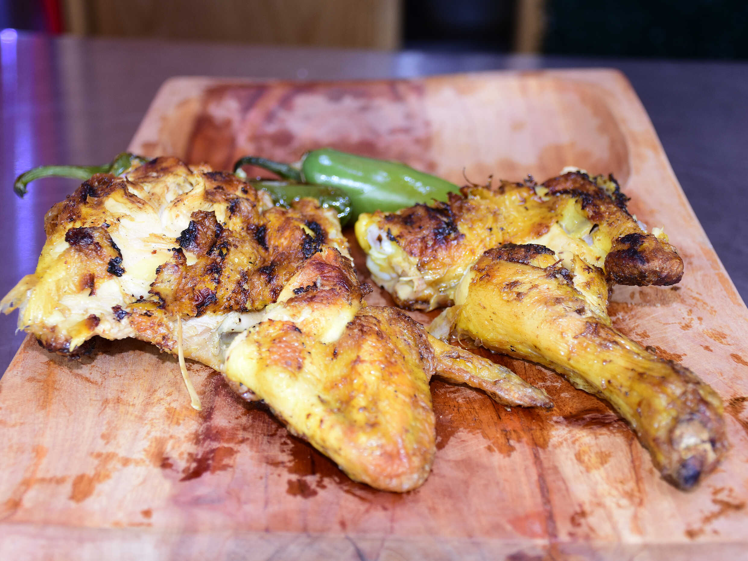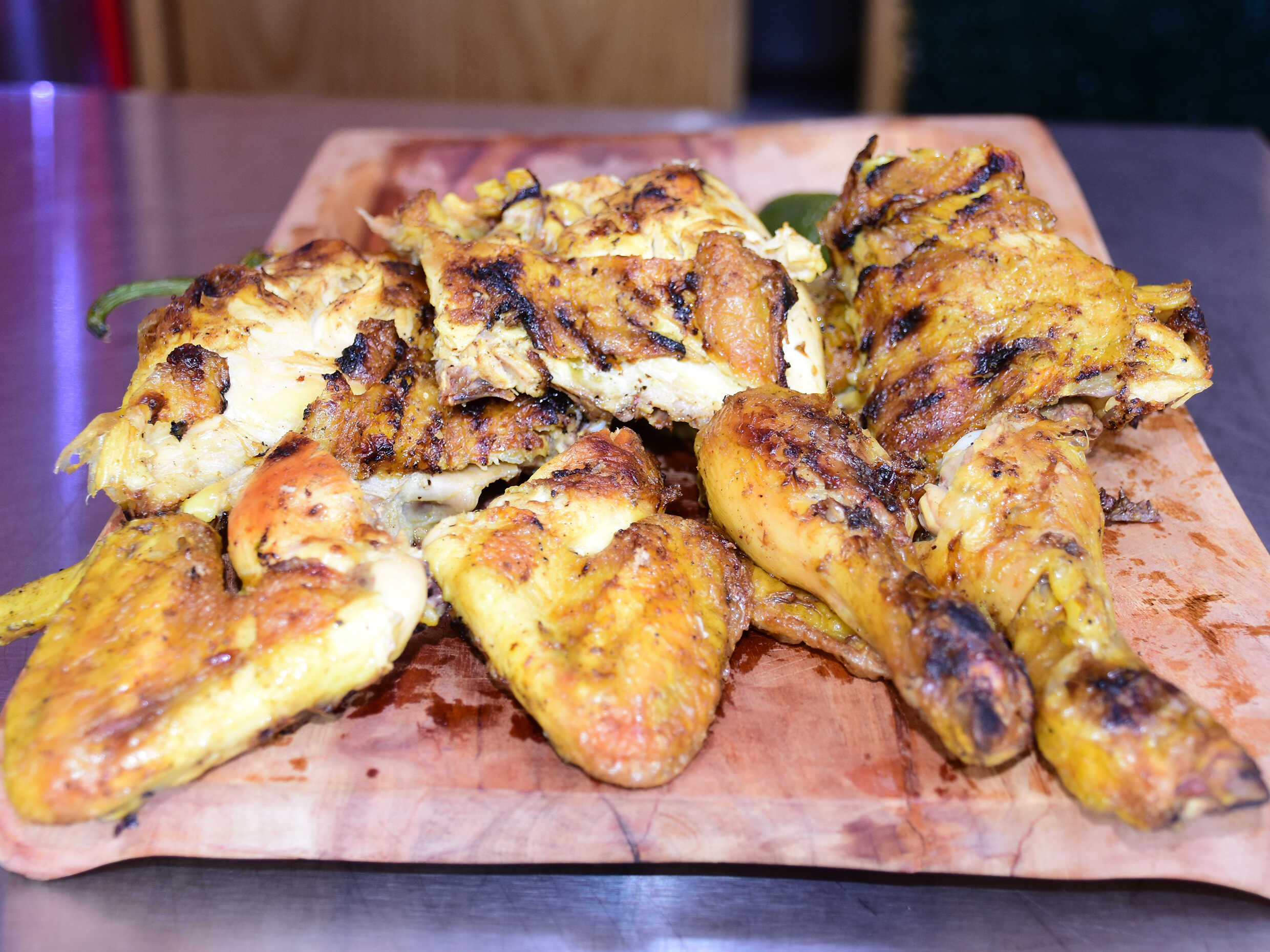 Medio pollo asado incluye tortillas, salsa y frijoles.