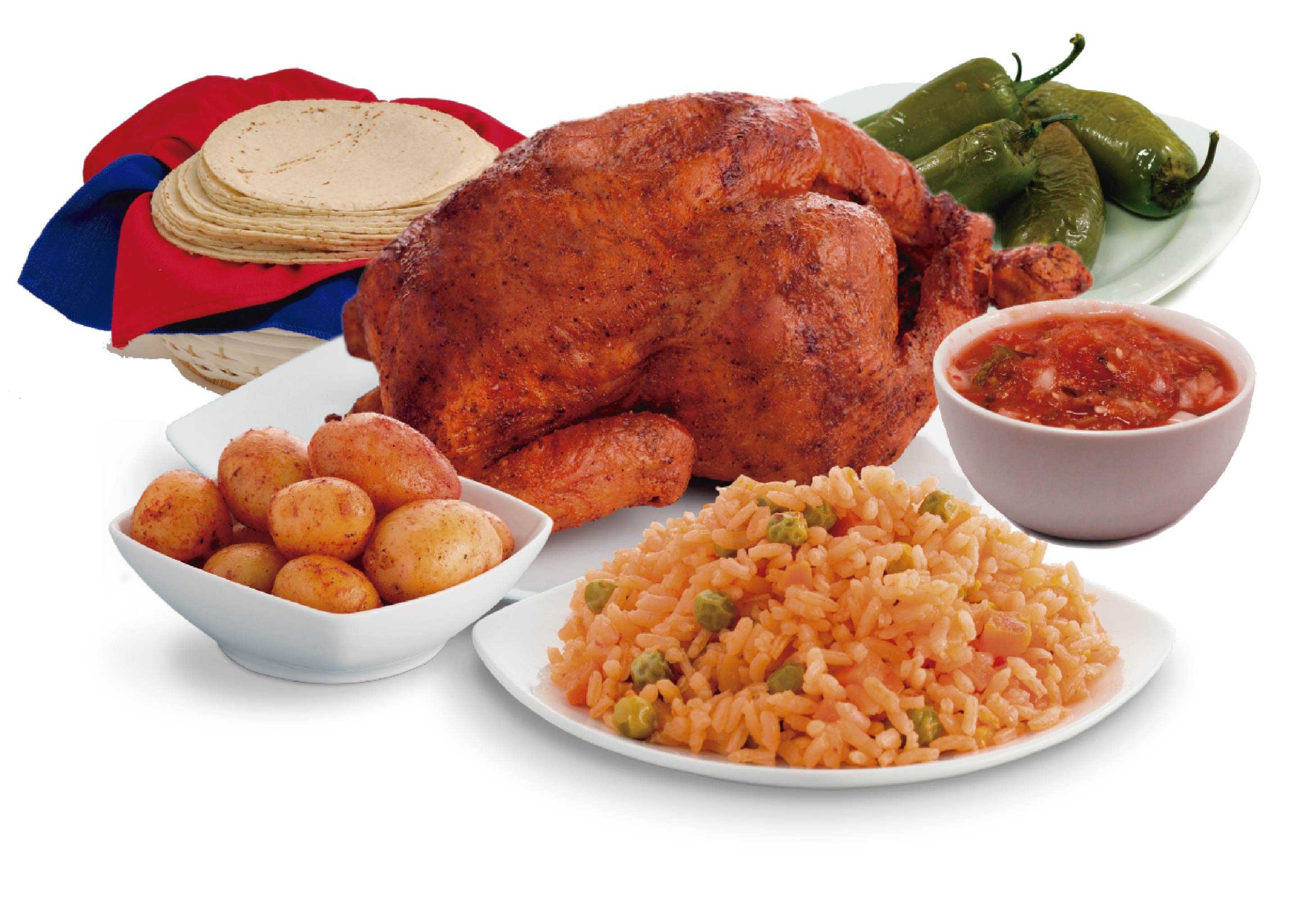 Medio pollo rostizado, jugoso y sabroso, preparado con nuestra receta especial y saludable que nos identifica por su gran sabor y calidad. Especial para 2 a 3 personas. Incluye salsa, tortillas y chiles toreados.
