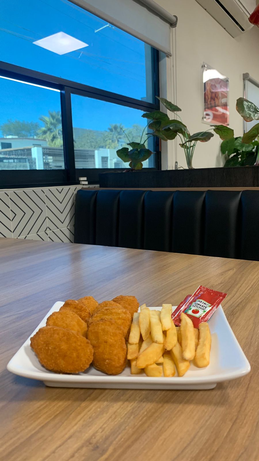 Ranch, apio, zanahoria. Salsa: BBQ, búfalo o mango habanero.