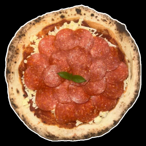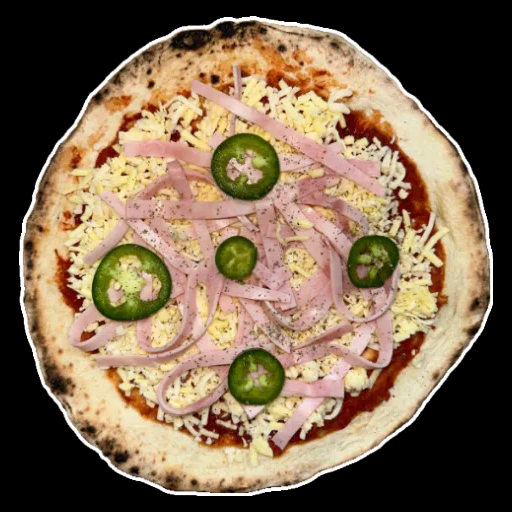 Pizza Napolitana echa con masa fermentada 24 hrs en frio, salsa de tomate y especies, mescla de quesos y ricas tiras de jamon de pierna. (22 a 23 cm de diametro aprox)
