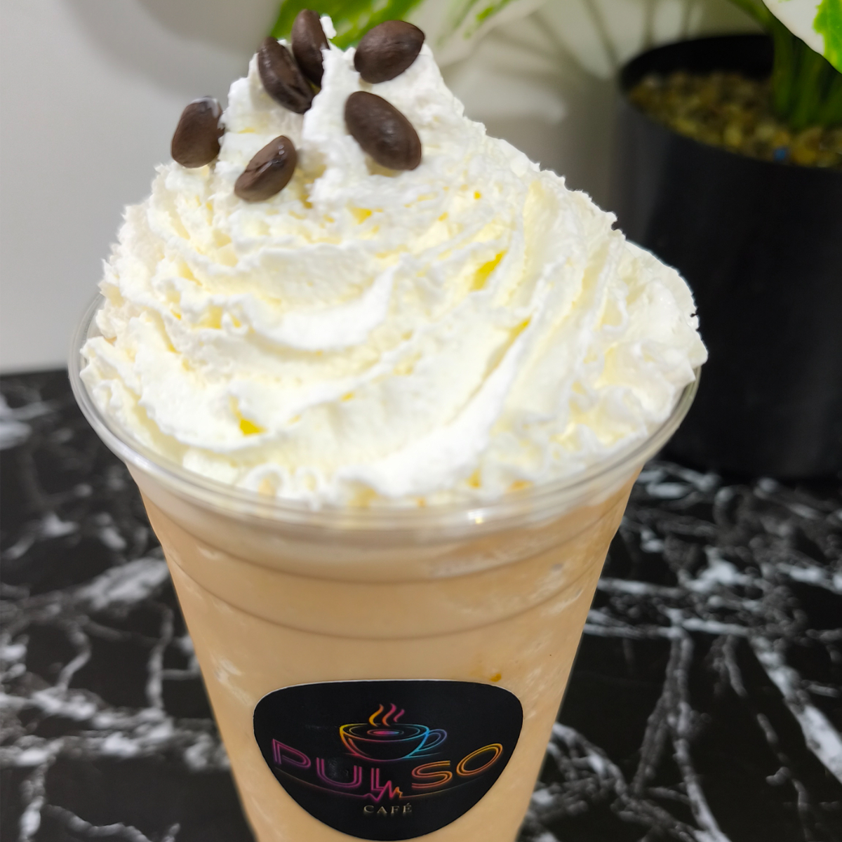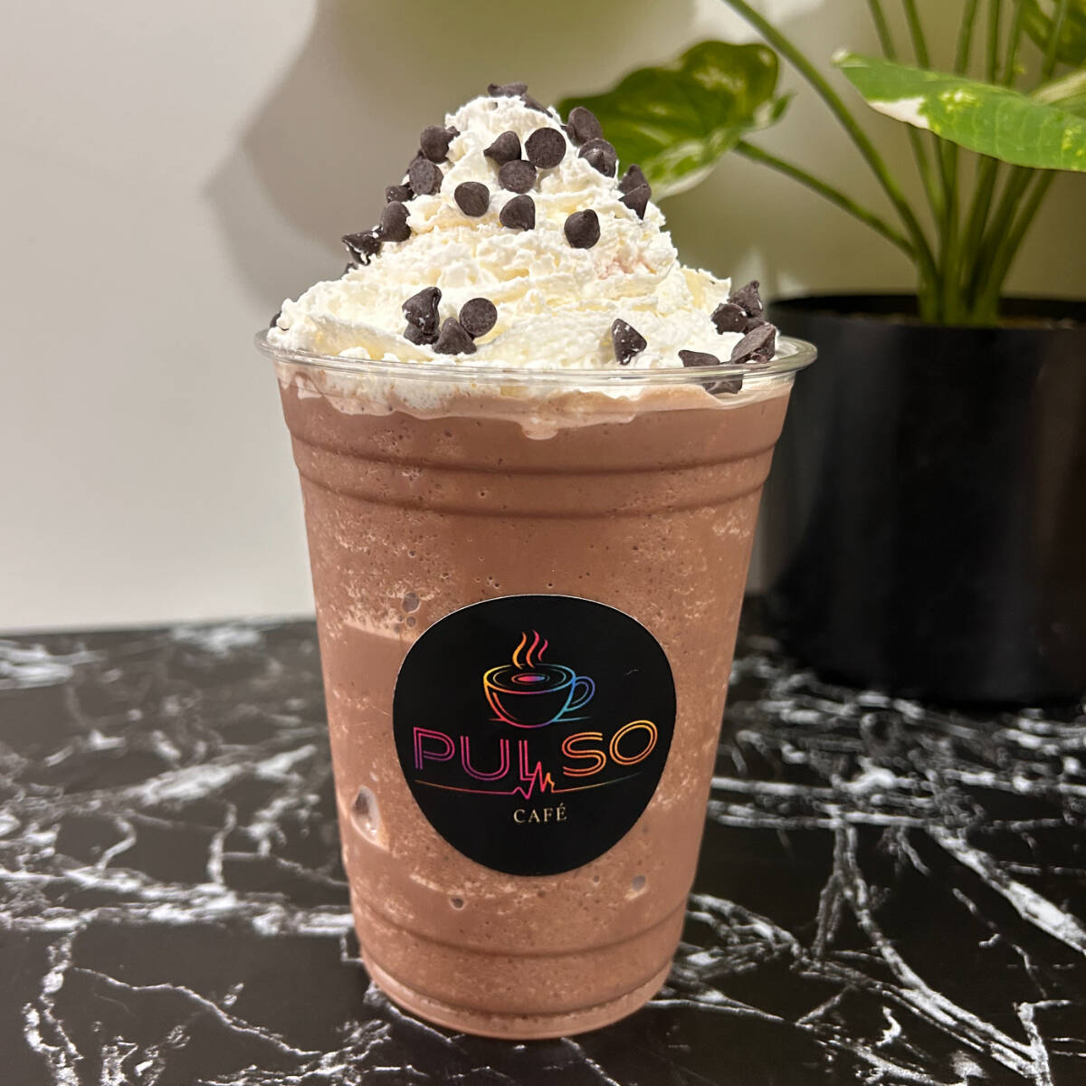 Es una mezcla granizada de doble espresso, leche, hielo y salsa de chocolate coronado con crema batida