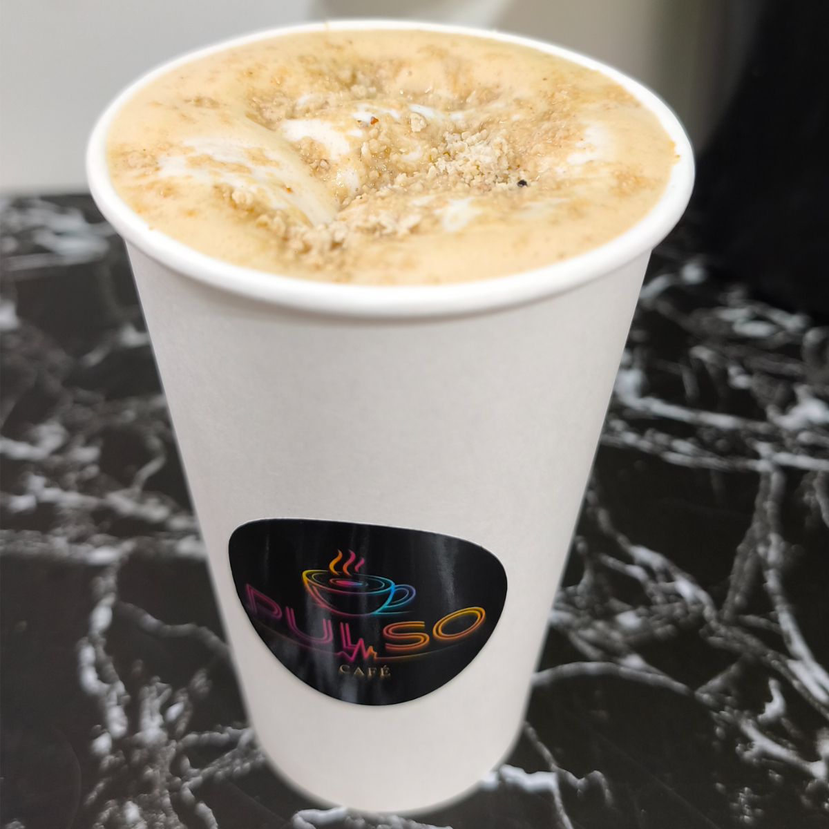 Es una mezcla granizada de triple espresso, leche, hielo y mazapan original, coronado con crema batida