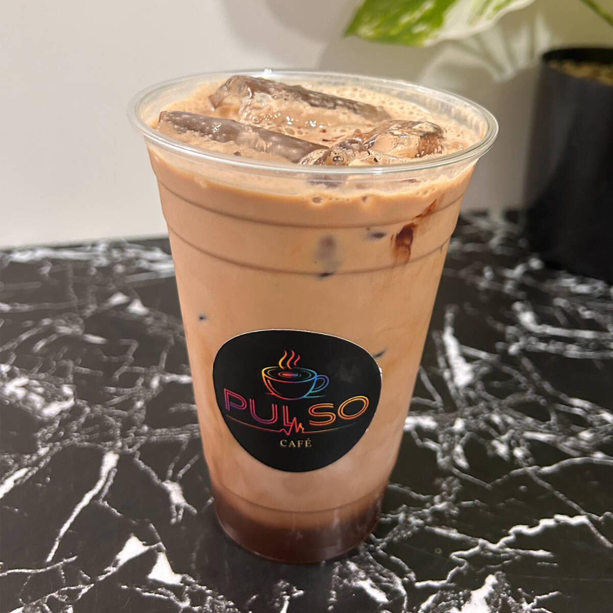 Se prepara mezclando triple carga de espresso caliente con salsa de chocolate, leche fria y hielo