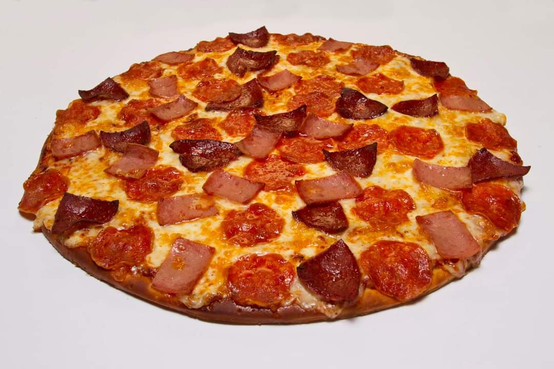 Tamaño 14 pulgadas, jamón, pepperoni, salami, queso mozzarella.