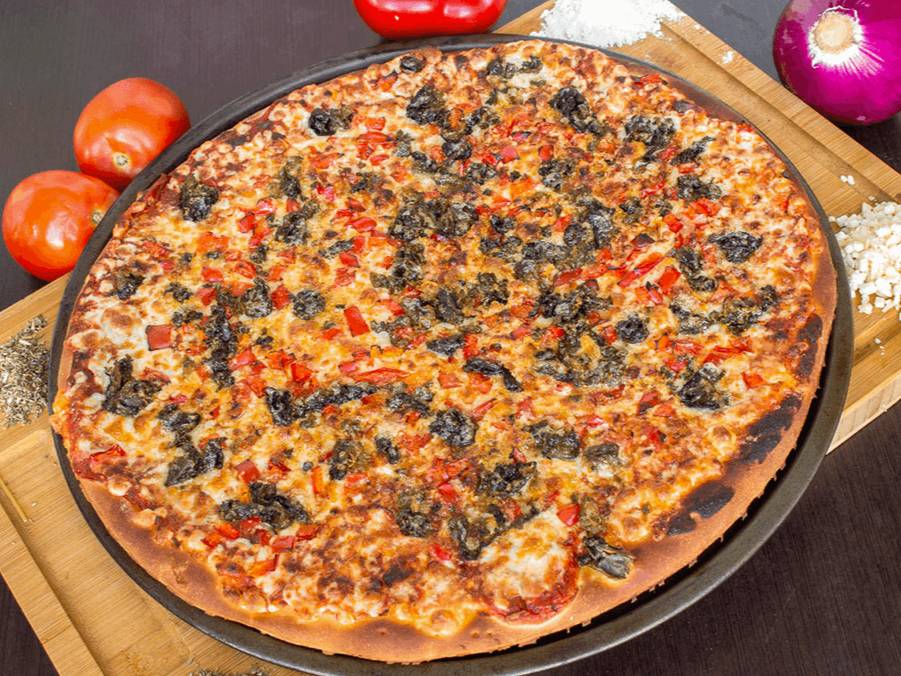 Tamaño 14 pulgadas, salsa de tomate, queso extra, cebolla, aceituna negra, pimiento verde.