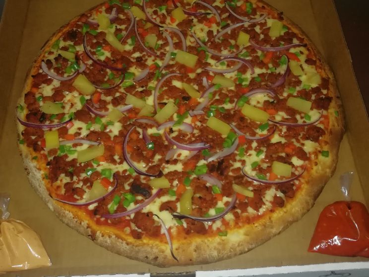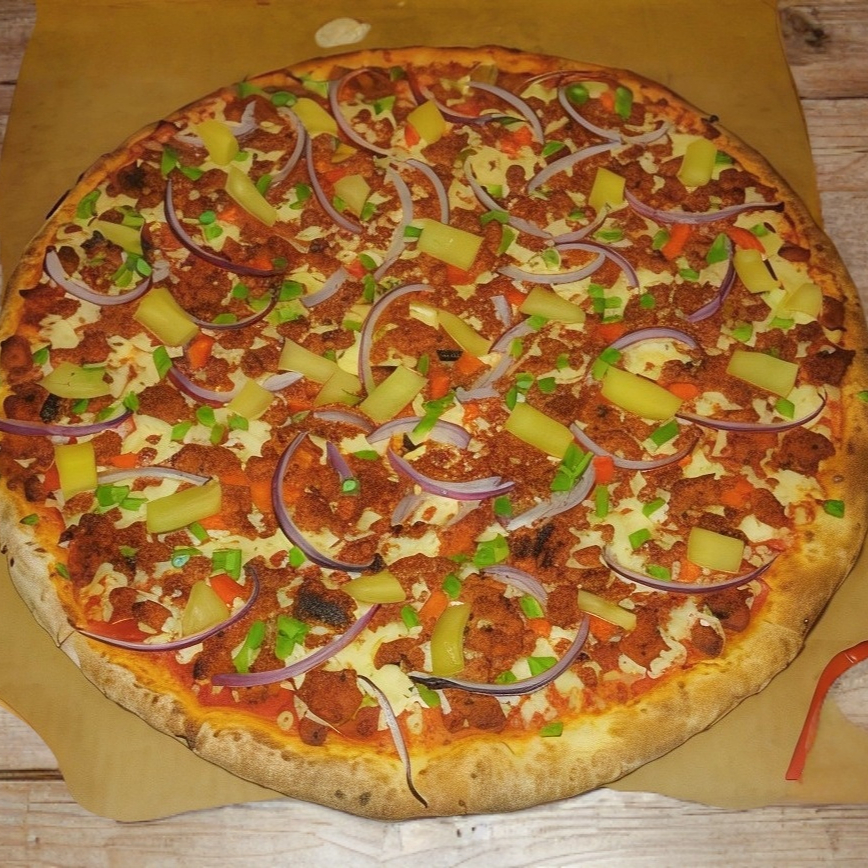 (8 rebanadas) Chorizo, tocino y jalapeño.