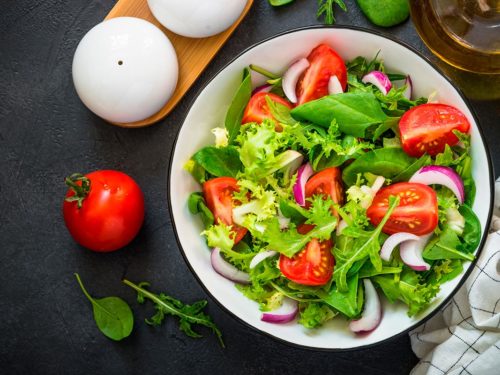 Lechuga, tomate, pepino, zanahoria, col morada, aceitunas negras, limón, aderezo
