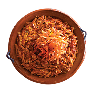 (4 pz) Con cebolla morada en escabeche, salsa pibil,frijoles refritos, queso y totopos. Incluye: sopa, bebida y postre