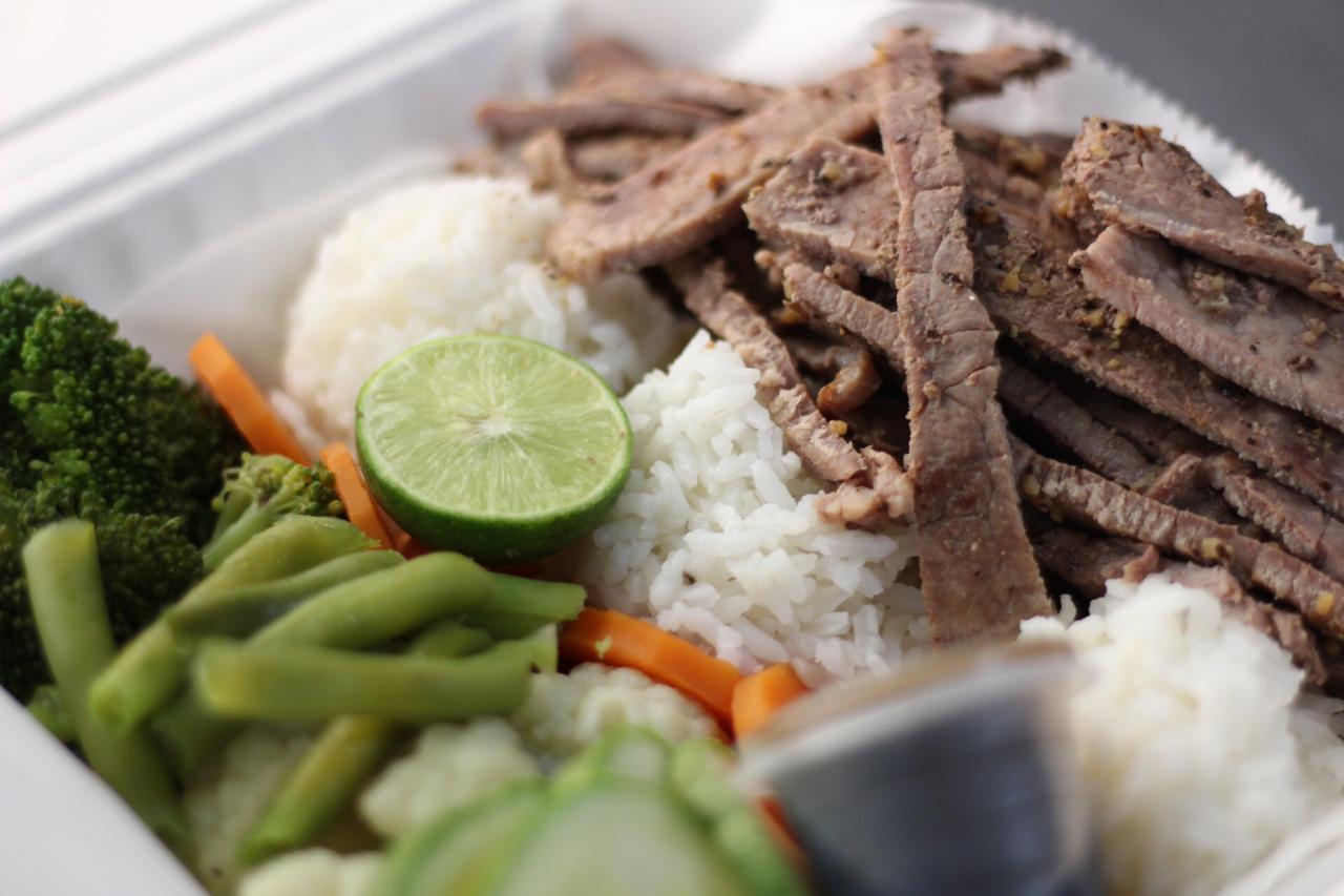 Filete de cerdo a la plancha, acompañado de carbohidratos y vegetales a su gusto, salsas y aderezos a elegir.