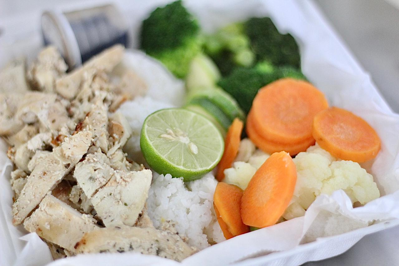100 g De fajitas de pollo con 70 g de carbohidrato, tus vegetales, tu salsa, tu aderezo a tu elección y limones.