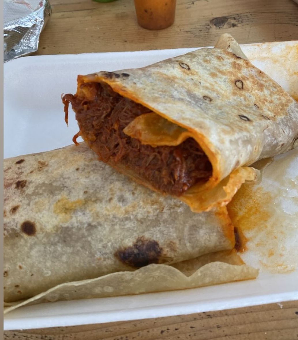 Tortilla de harina rellena de carne con chile