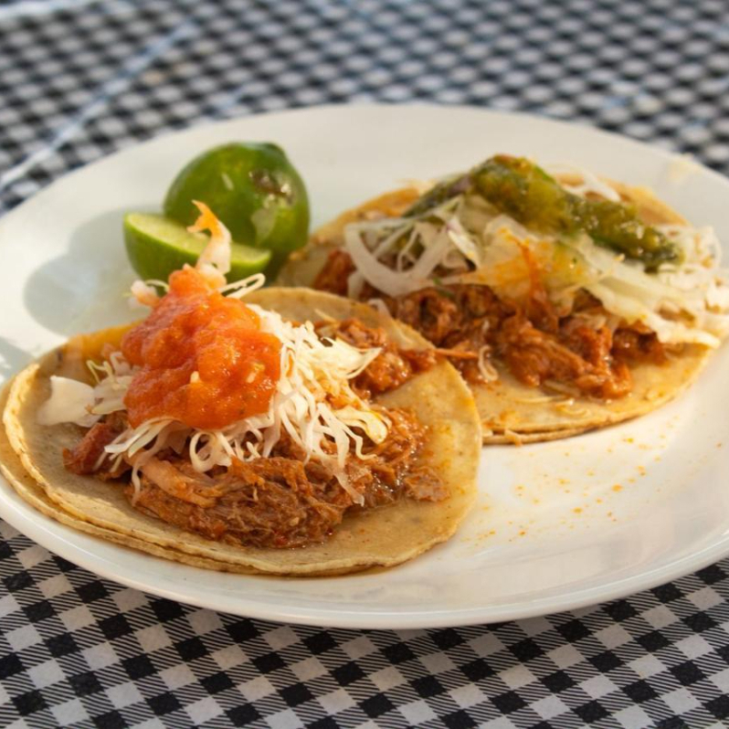 Salsa roja de tomate, acompañados de verdura, queso, crema y frijoles.