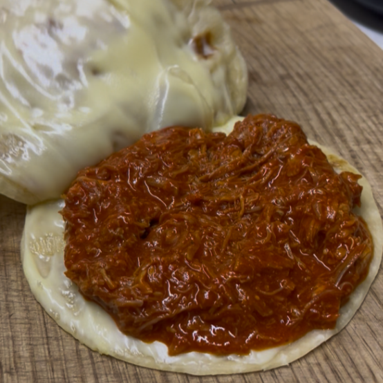 Tortilla sobaquera con carne deshebrada, chile verde, cebolla y papa