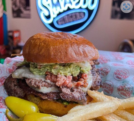 Deliciosa Smashburger preparada al estilo Oklahoma con cebolla finamente picada, Pan Brioche, queso americano, mermelada de tocino, aderezo smash. Lechuga, tomate, (opcional).