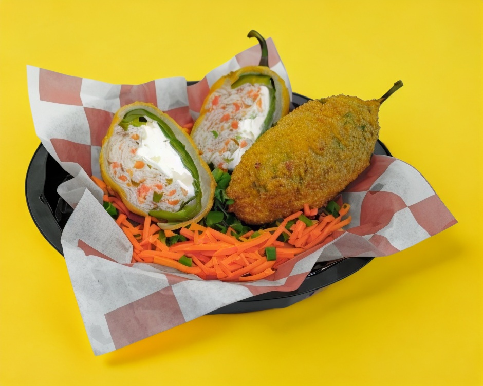 Dos chiles Jalapeños rellenos de Tampico especial y queso Philadelphia