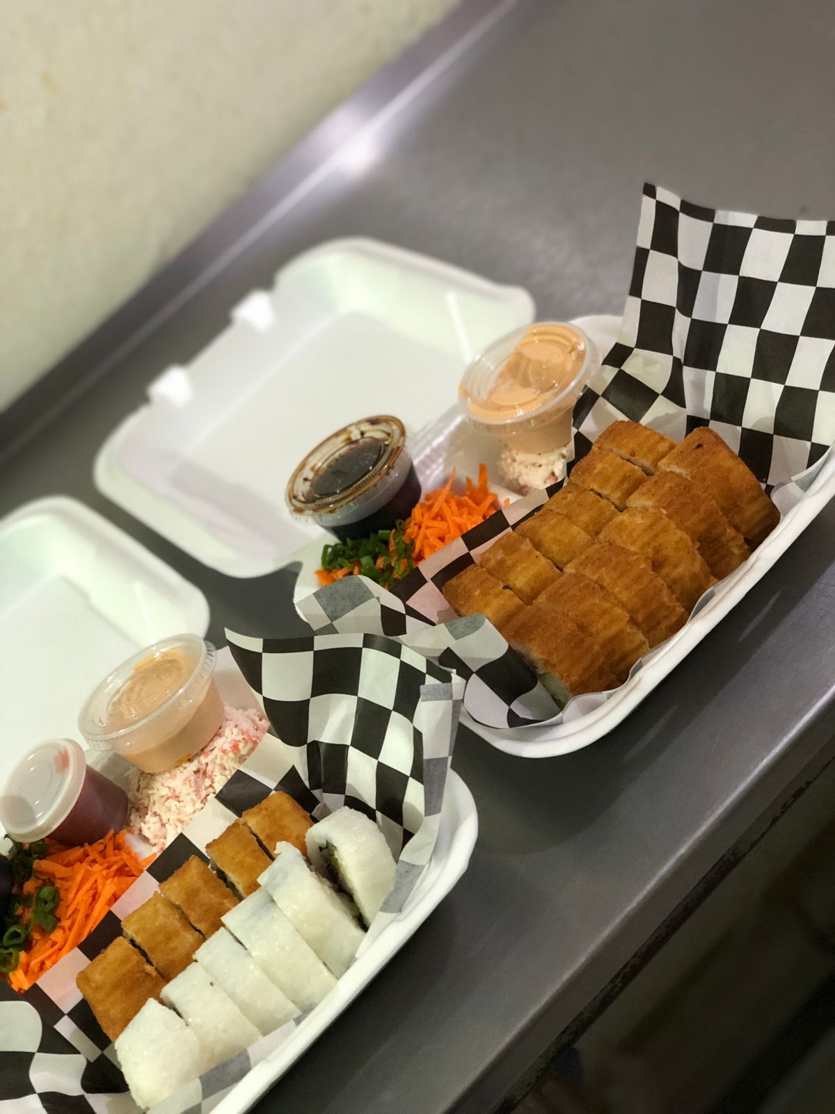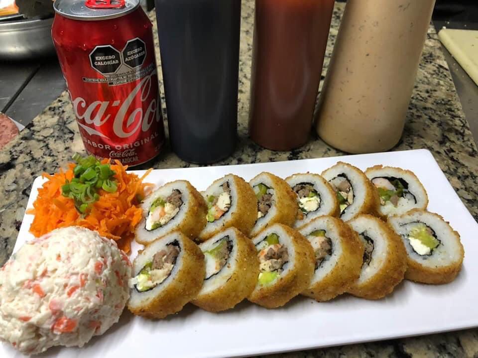 Pollo, camarón, res, aguacate y philadelphia, acompañado de tampico, zanahoria, cebollín, ordenalo natural o empanizado, aderezo chipotle y salsa china.