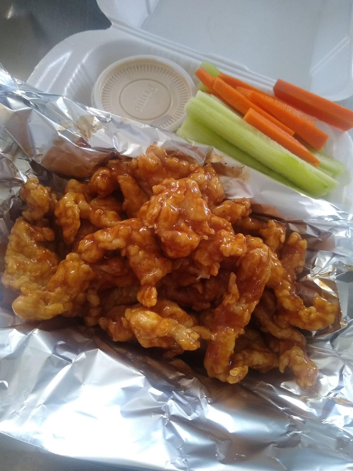 250 gr de boneless bañados en salsa de elección, acompañados de pepino, zanahoria y aderezo ranch.