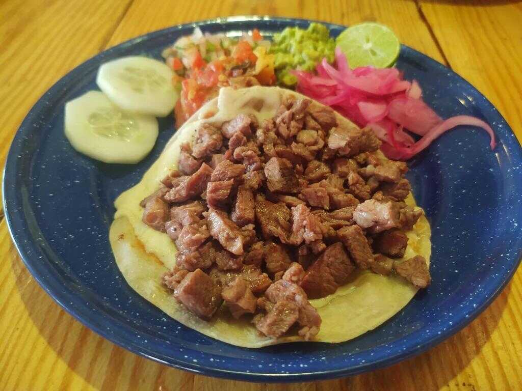 Tortilla de harina o maíz con frijol carne asada y carne al pastor