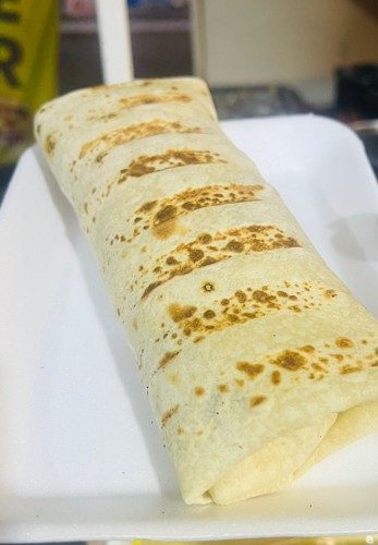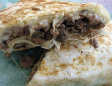 Burro de Asada, frijol, repollo y carne de res, salsas bandera y verdura aparte.