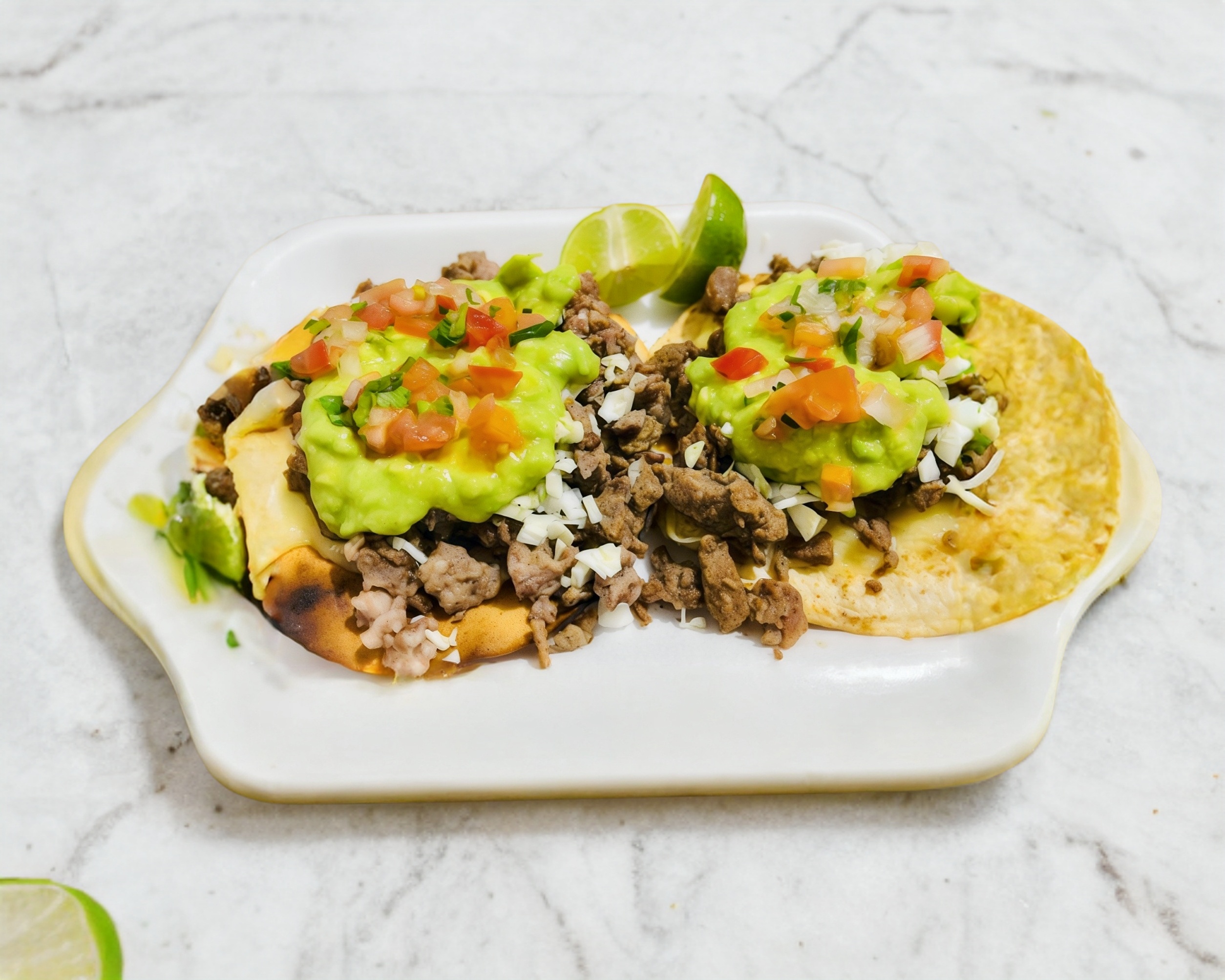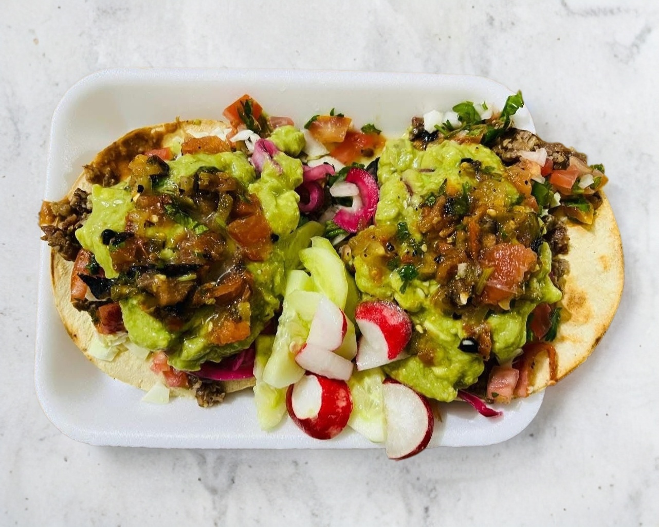 Burro de Asada, frijol, repollo y carne de res, salsas y verdura aparte.