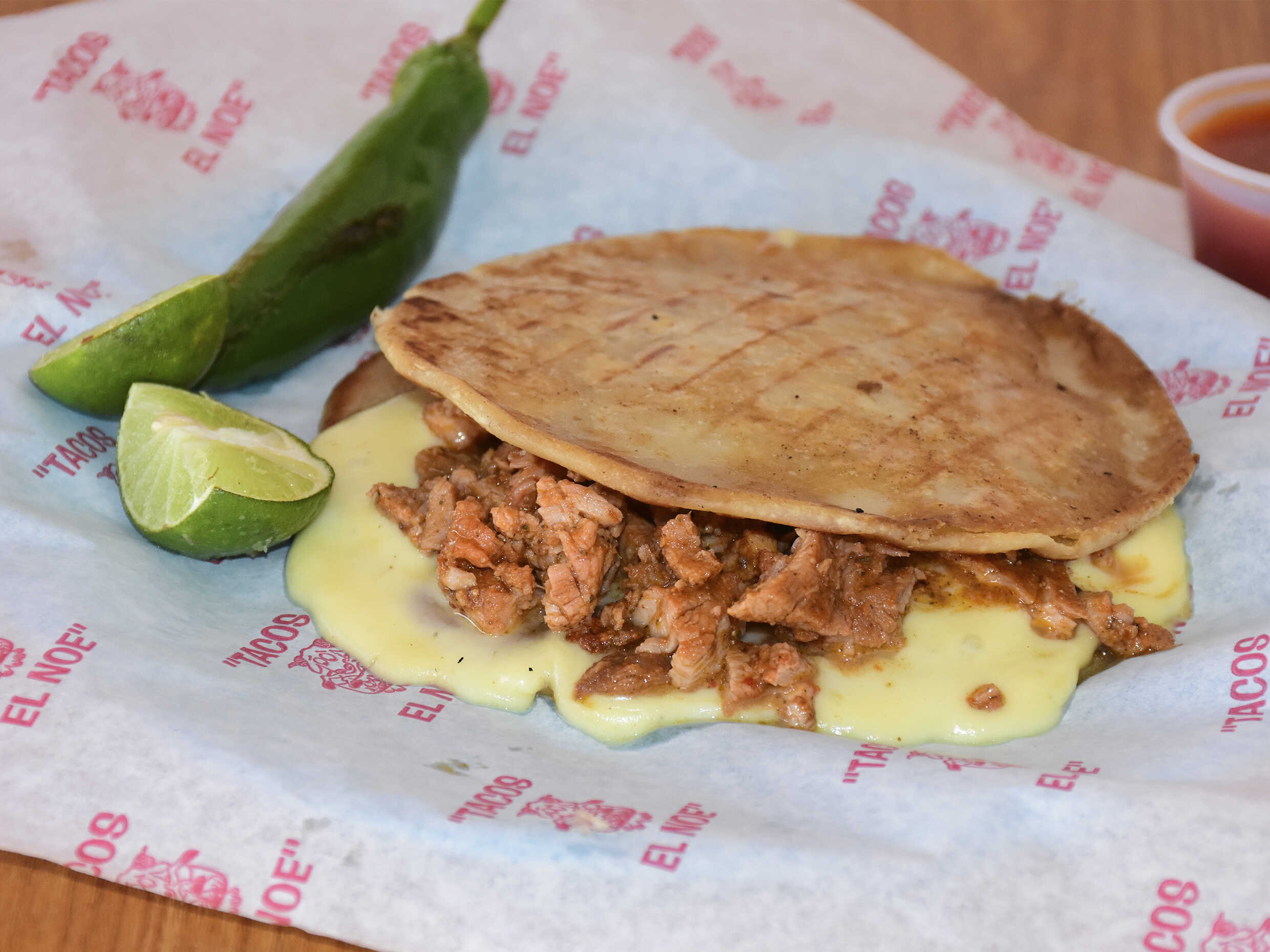 Tortilla de harina 16 cm ( 2 piezas) gorditas con queso cocido con el guiso de tu gusto sencilla, adobada, chicharrón, cabeza y birria de borrego.