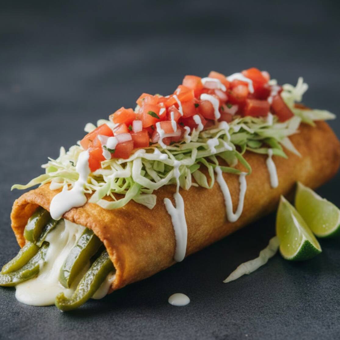 Chimichanga crujiente de rajas con queso derretido 😋, recién hecha y preparada al momento con ingredientes frescos y auténtico sabor casero.
