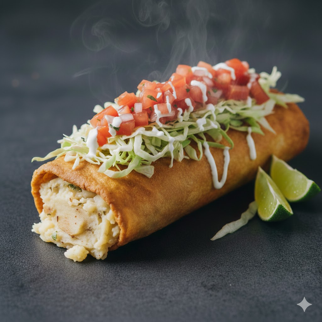 Chimichanga crujiente de frijol 😋, dorada al momento y preparada con sabor casero que la hace irresistible.