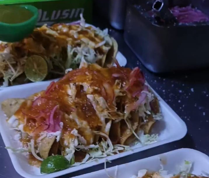 Platillo completo de 3 tacos dorados + 1 Chivichanga Grande de papa con carne deshebrada. Los acompañamos con lechuga, repollo, consomé de tomate sin picante y salsa verde picante. Aderezamos con crema natural, aderezo de cilantro, queso tipo cotija, cebolla morada curtida y limón.