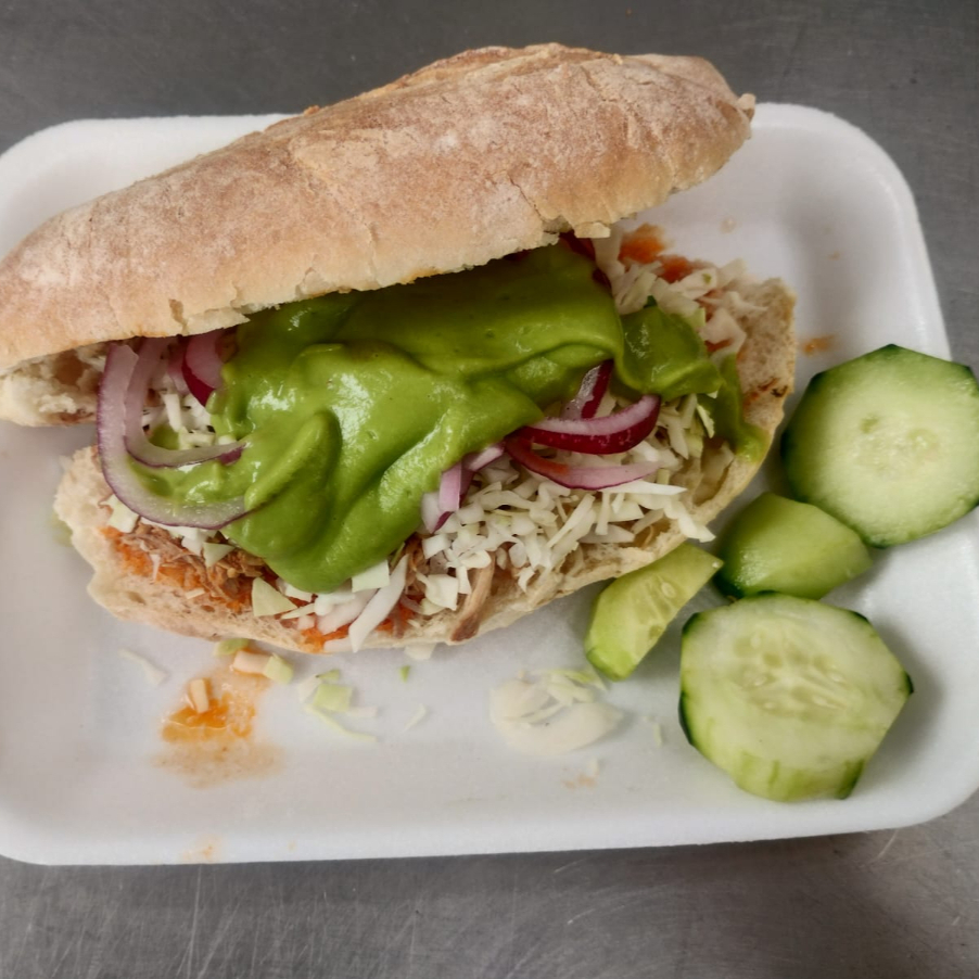 Torta de adobada Con queso tomate,aguacate,cebolla y chiles