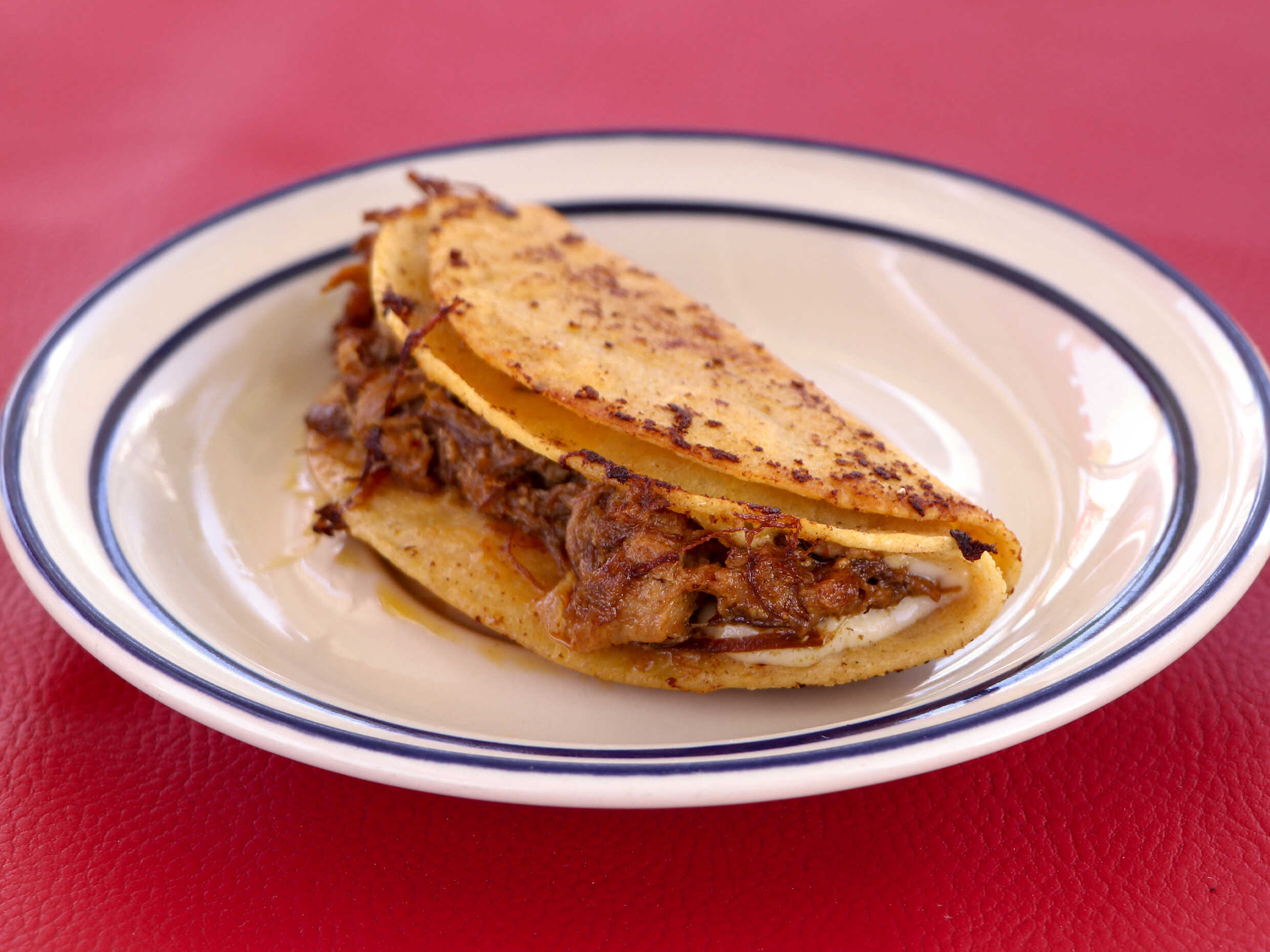 En tortilla gordita, queso asadero.