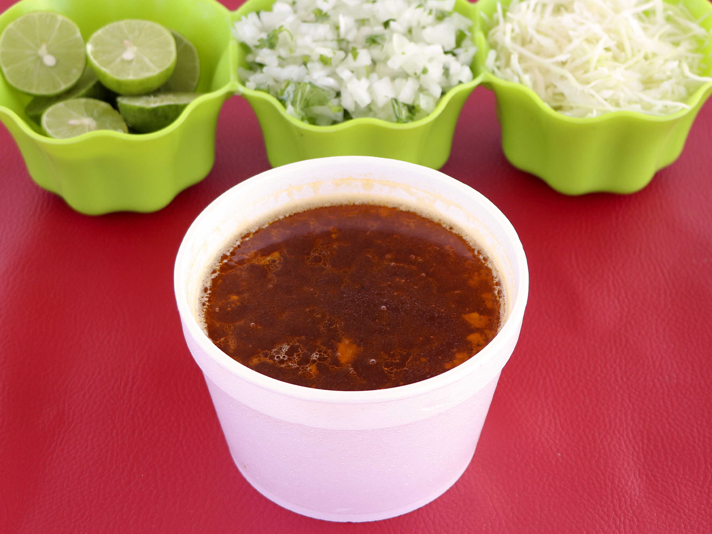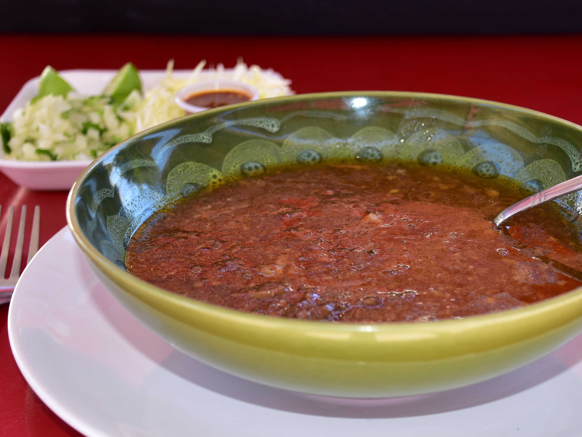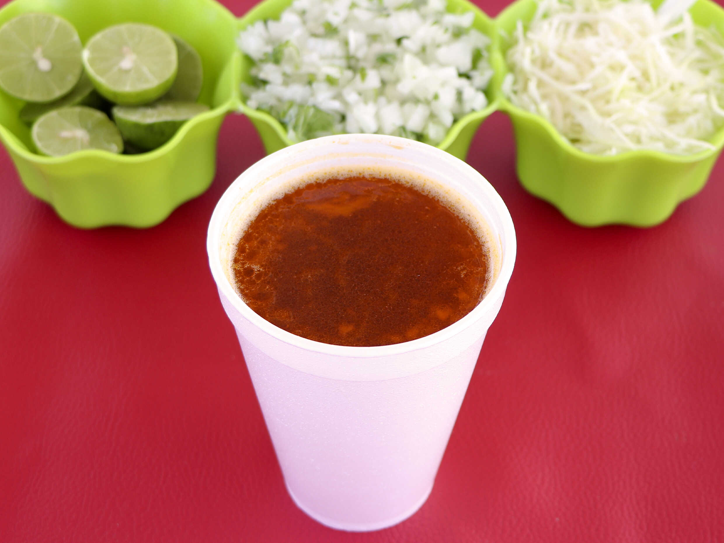 Caldo acompañado e tortillas y verdura.