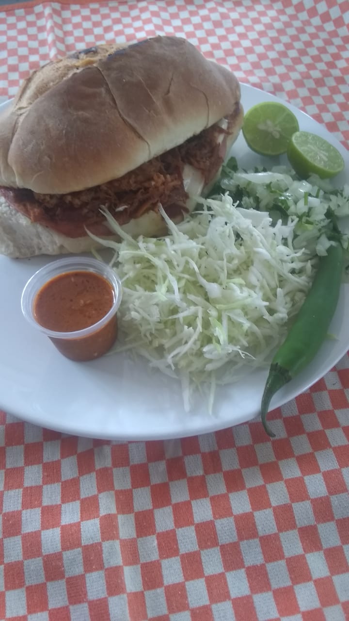 1 pieza Torta Sencilla con pan birote y carne a elegir. cabeza barbacoa o chicharron verdura repollo cebolla con cilantro y salsa de la casa
