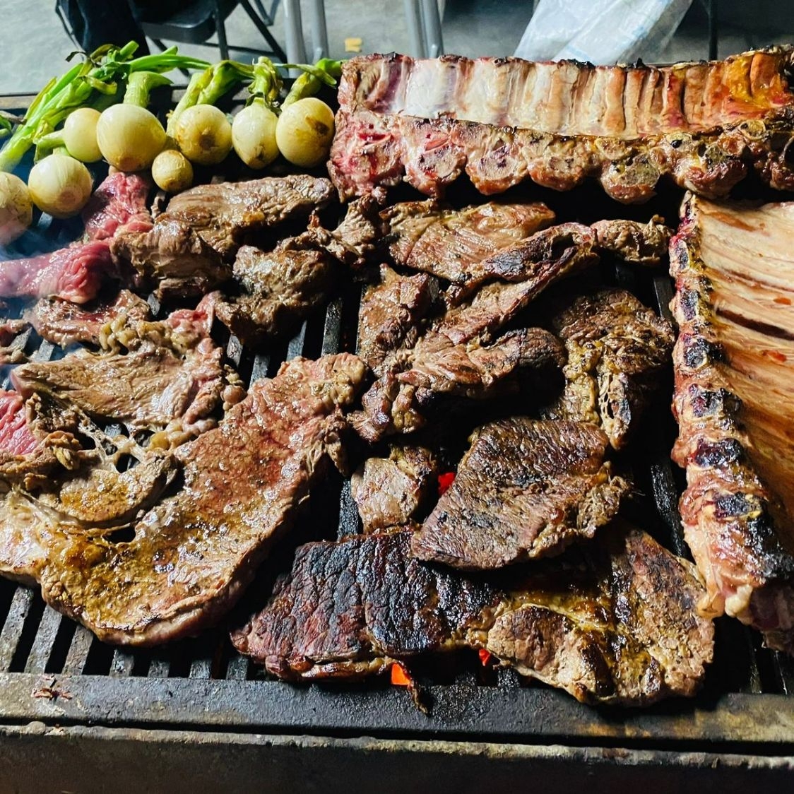 Parrillada con carne asada, pastor, chuleta, bistec y queso.
