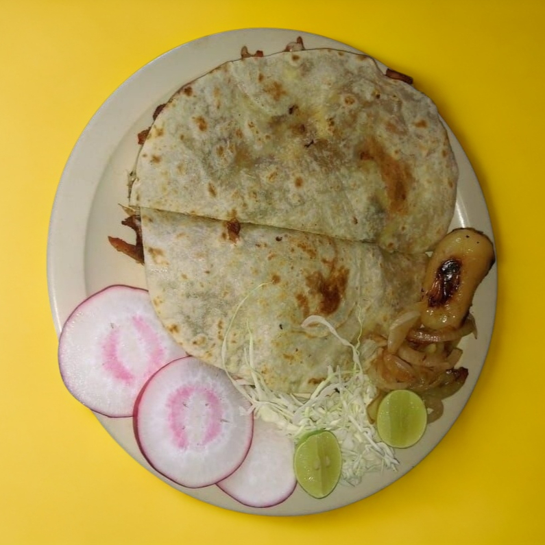 Gringa al pastor, asada, piña y queso.
