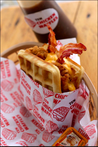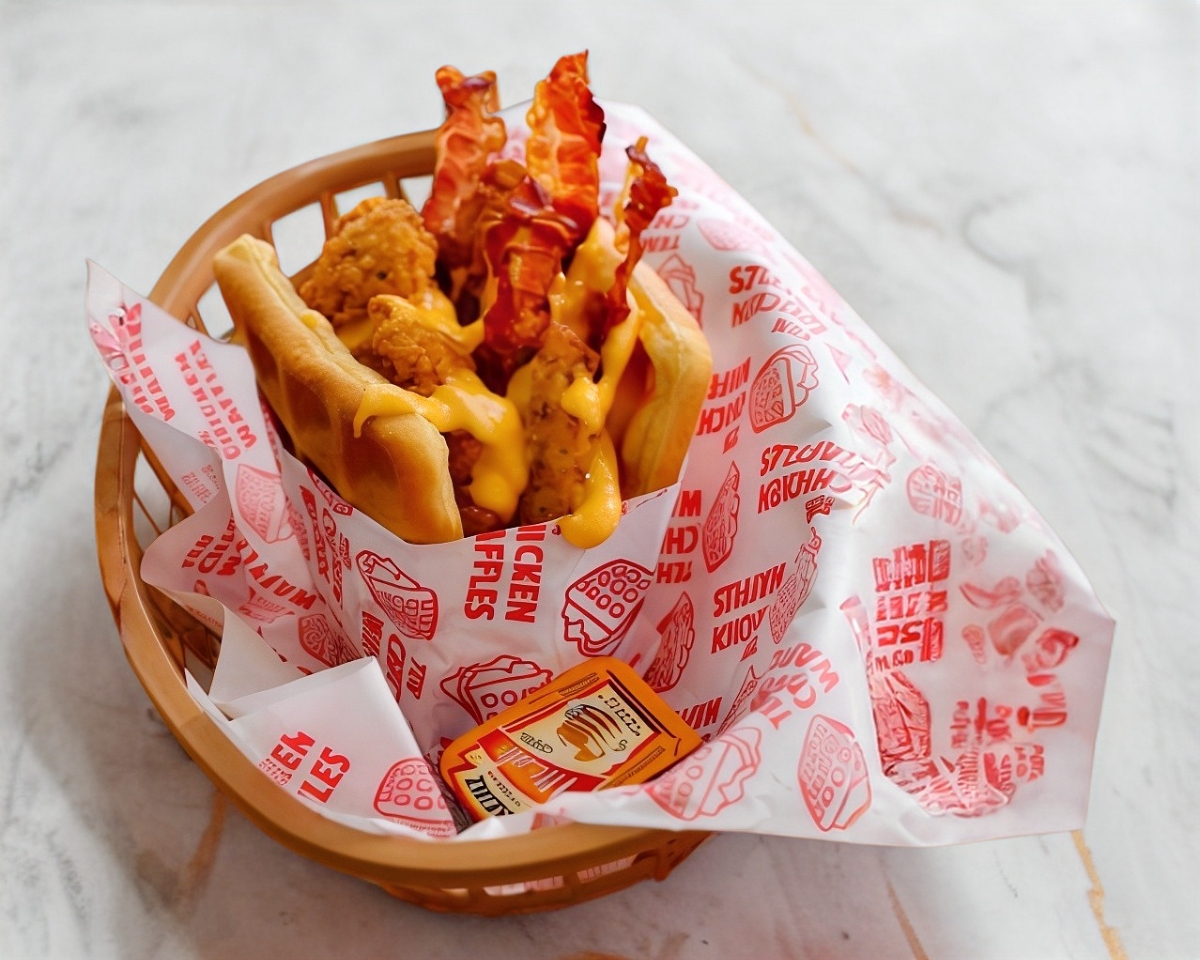 210 gr de pollo tender horneado con queso y doble porción de tocino.