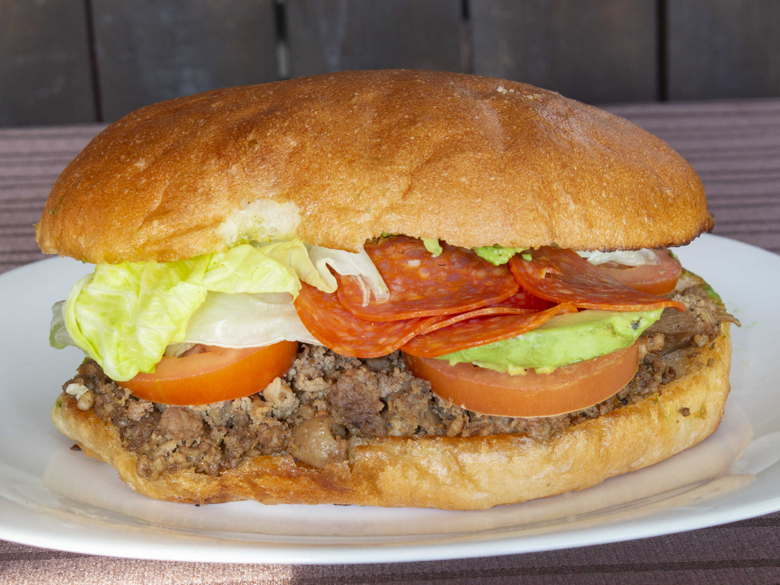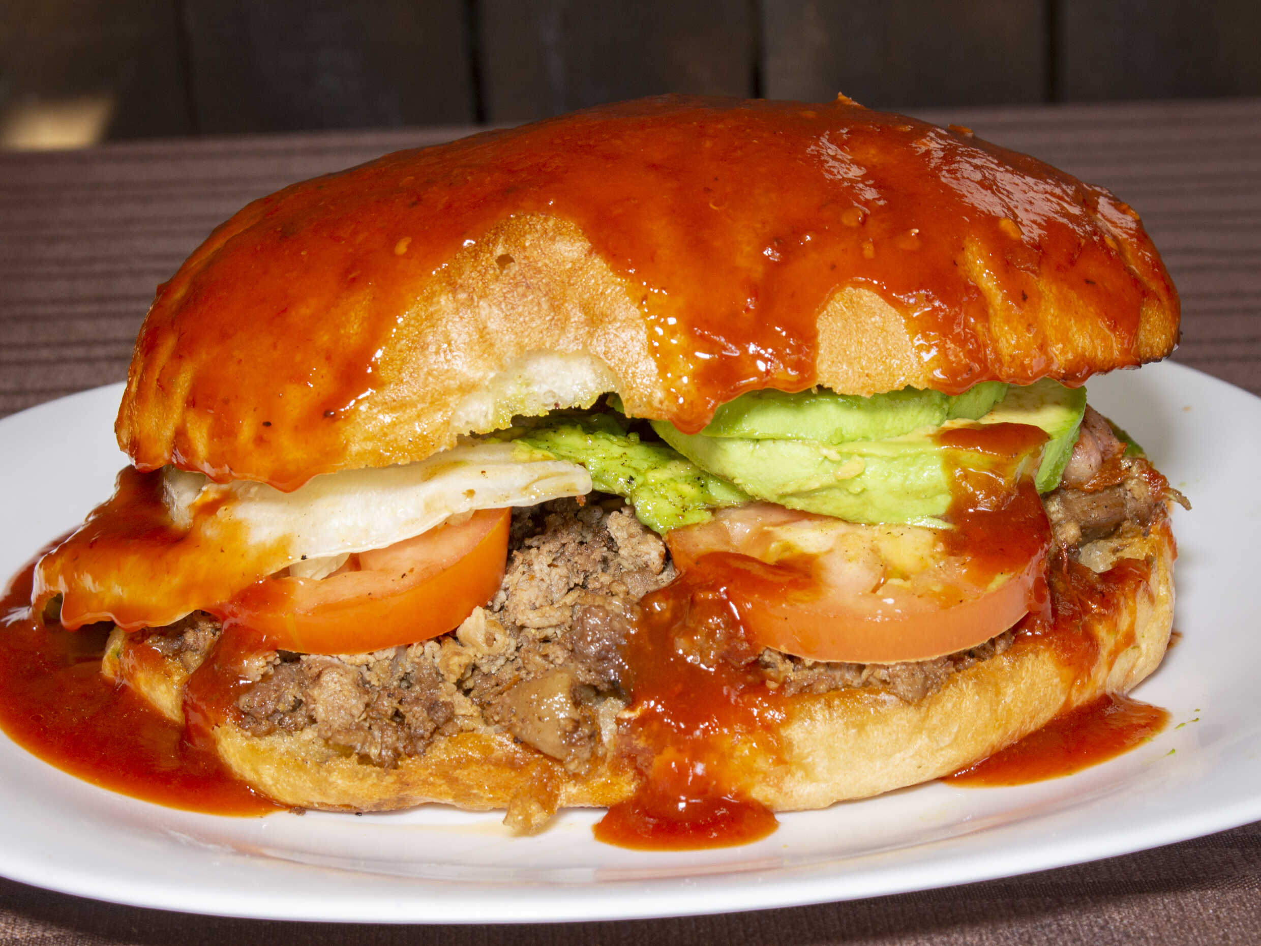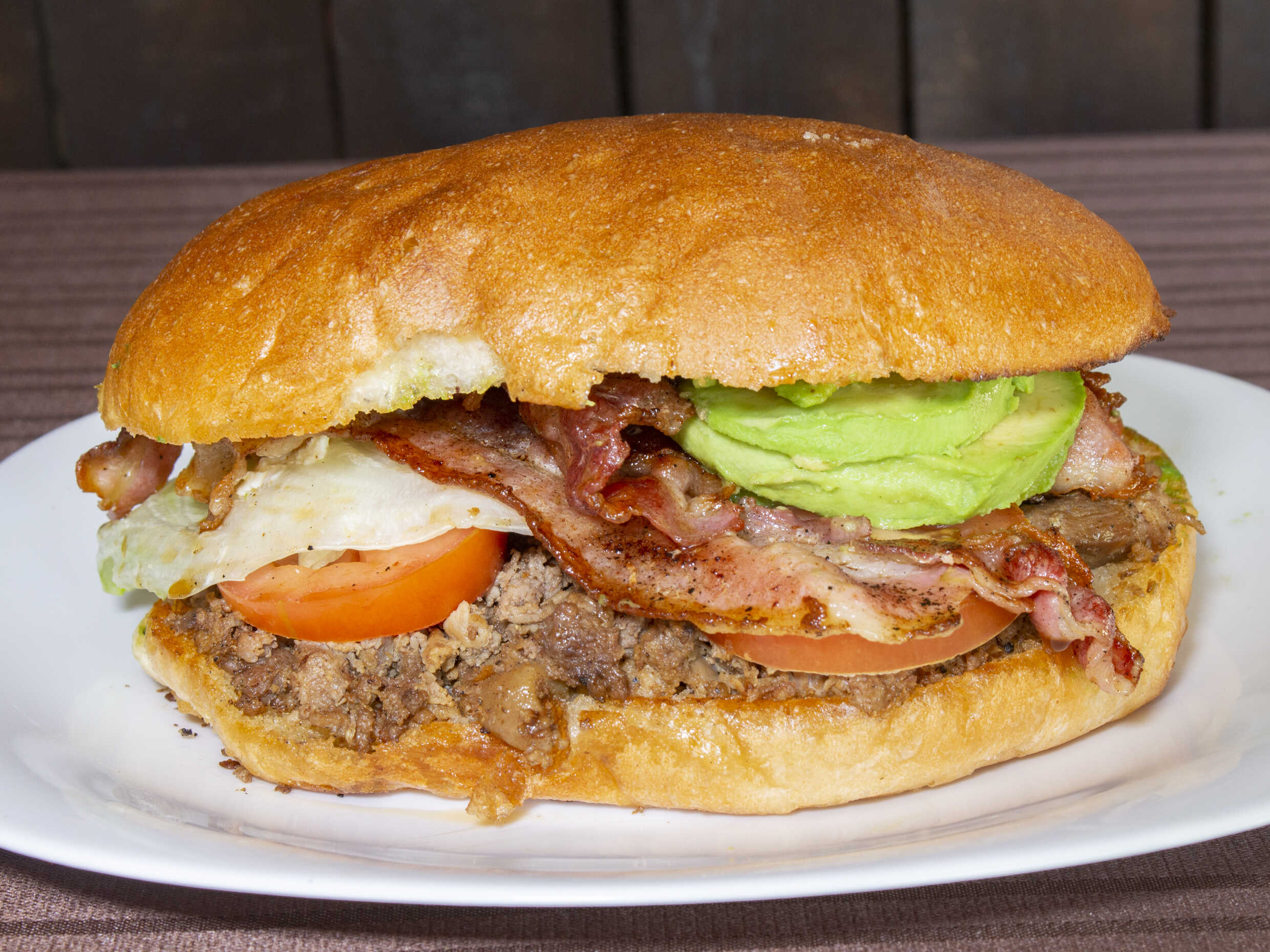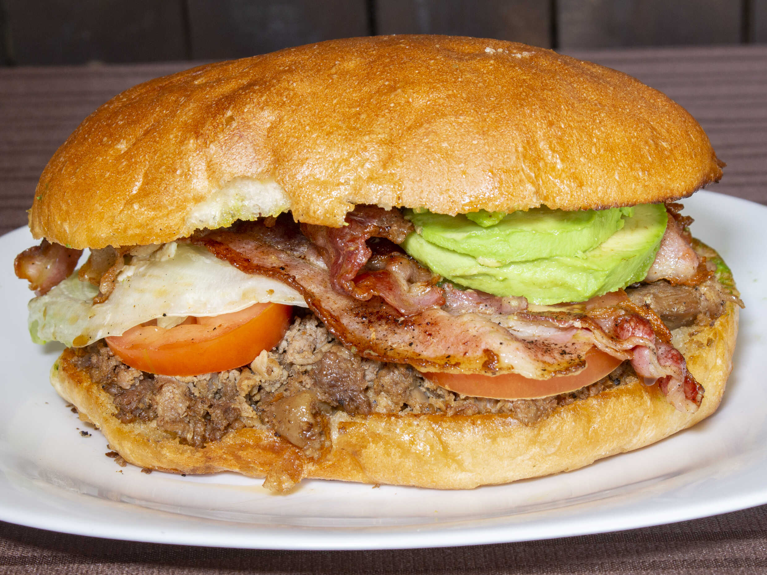 pan mayonesa carne tocino lechuga tomate y aguacate