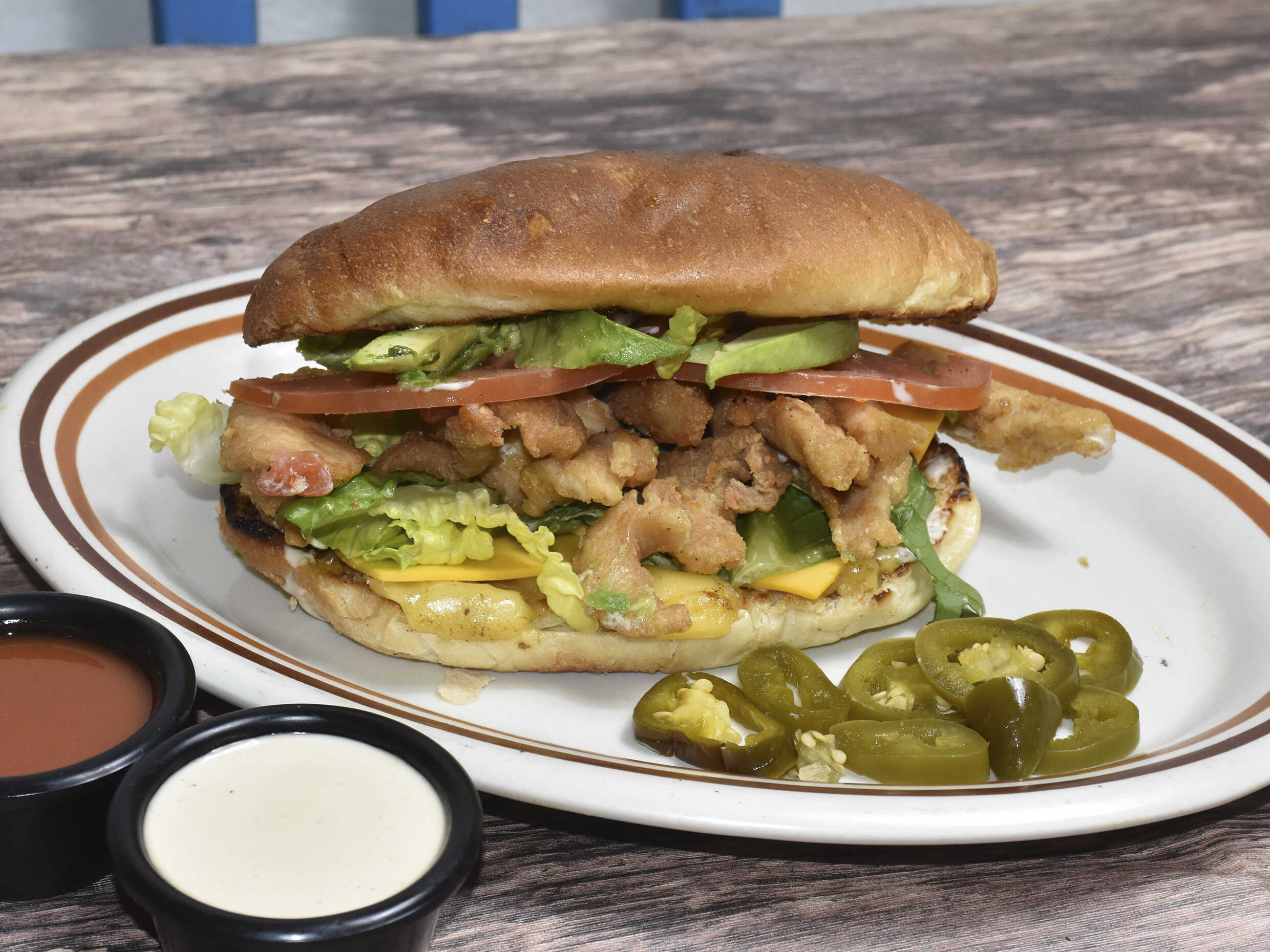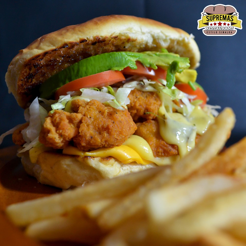 carne casera, jamon, salchicha, aros de cebolla, quesos. lechuga, tomate y aguacate. acompañada de papas francesas