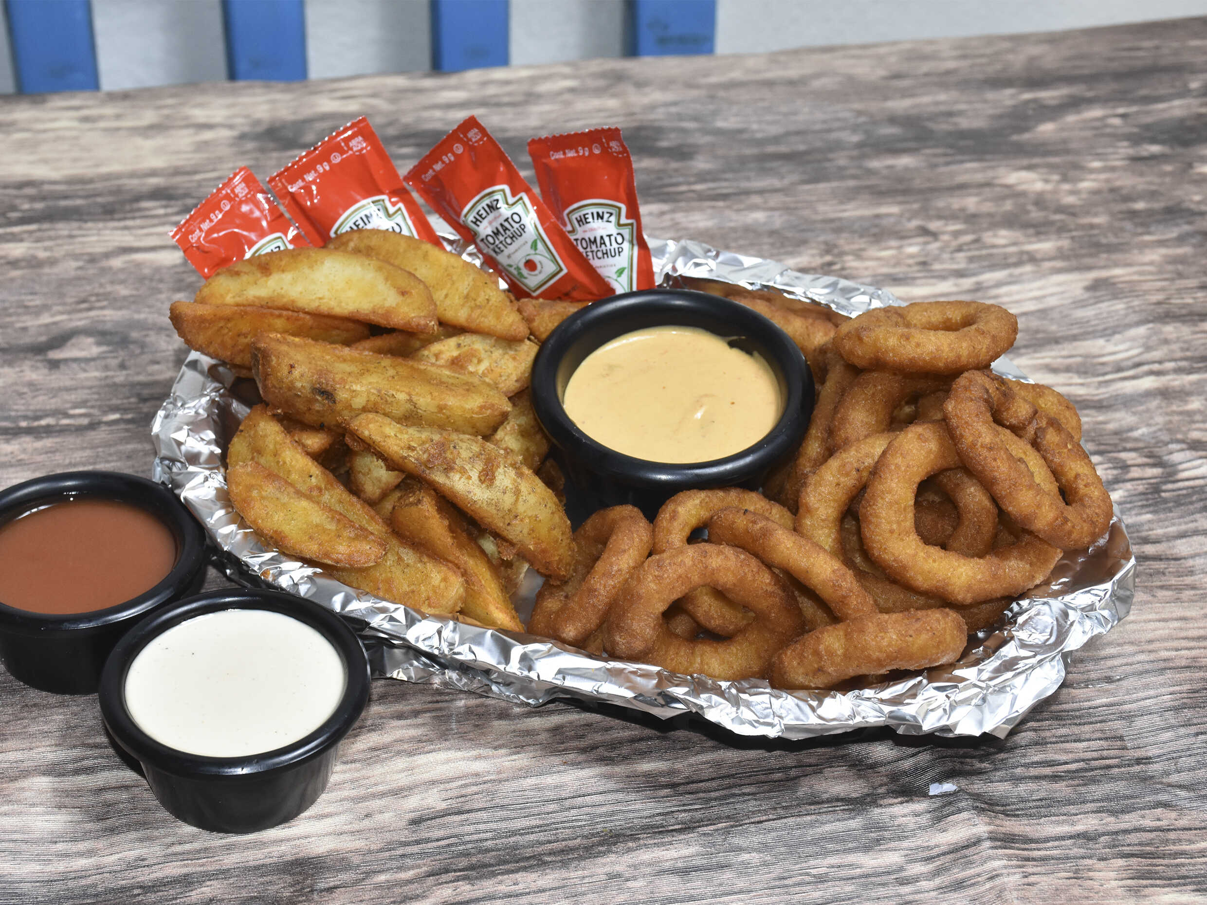 Tiras de pollo empanizadas con salsa Buffalo o BBQ a su elección