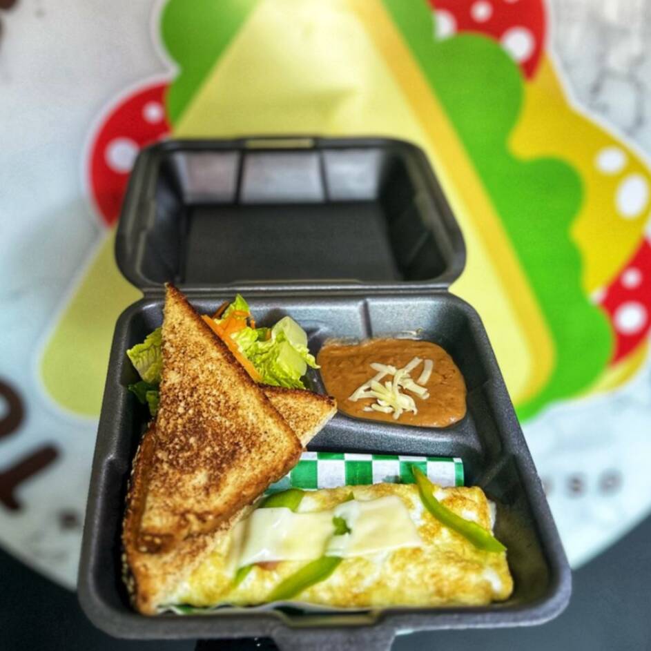 (Acompañado de frijol y tortillas). Armalo a tu gusto: Queso, Champion, Jamon, Pimientos, Espinaca, Queso Americano, Queso Manchego.