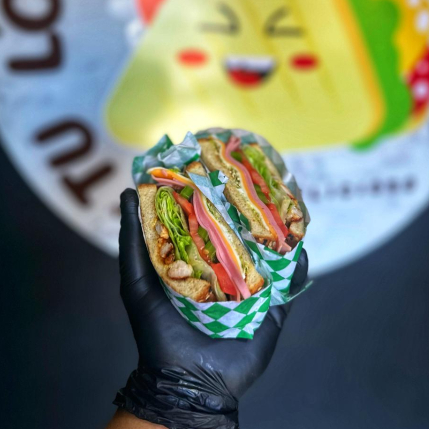 (jamón de pavo, tomate lechuga, 3 quesos (americano, queso crema & manchego))