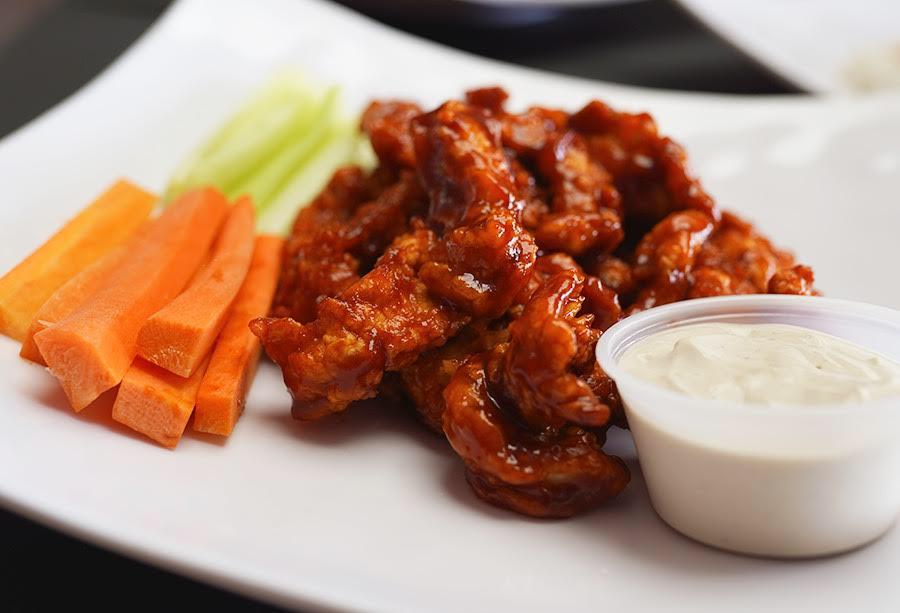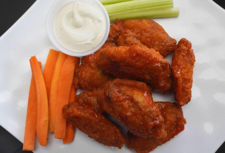 400 grs. De alitas bañadas en la salsa de tu elección, acompañadas de aderezo ranch y bastones de zanahoria y apio
