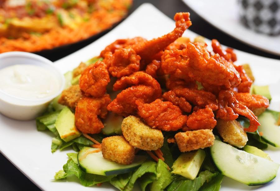 Lechuga, zanahoria, pepino, aguacate, crutones, boneless a elegir y aderezo ranch.