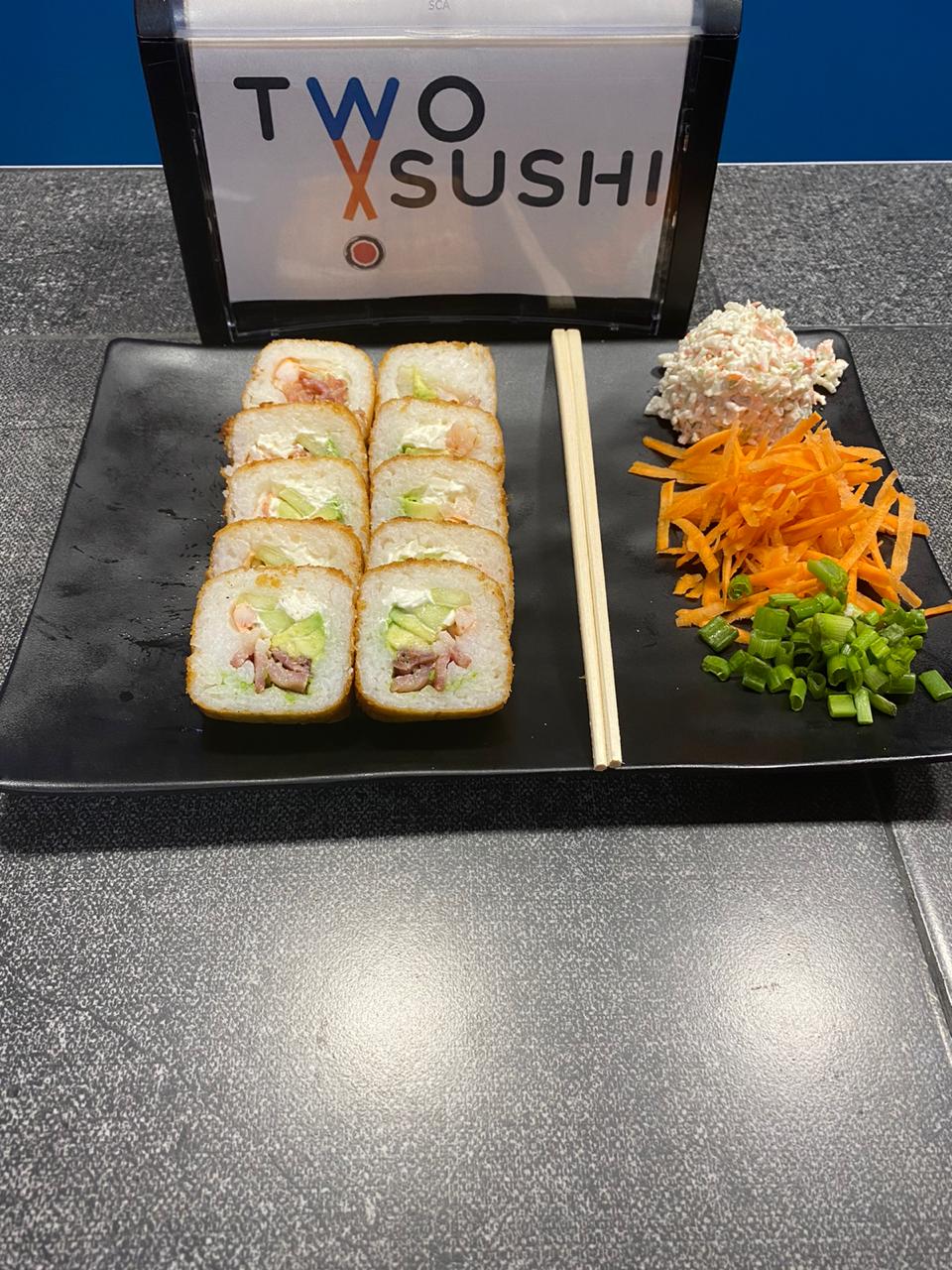 Res, tocino, chile habanero toreado, Philadelphia, pepino y aguacate.Todos los rollos incluyen tampico.