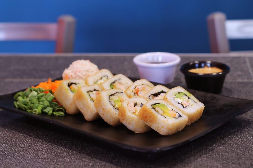 Pollo, camarón, chile caribe toreado, Philadelphia, pepino y aguacate.Todos los rollos incluyen tampico.