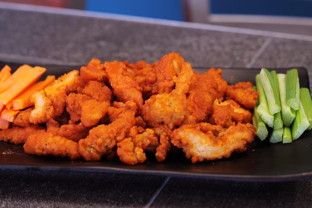 300Gr de pollo empanizado con receta de casa, acompañadas de zanahoria y apio con 2oz de aderezo ranch y bañaos con salsa de tu elección.